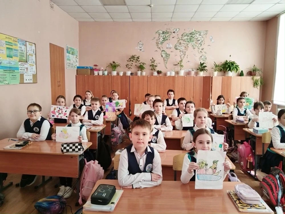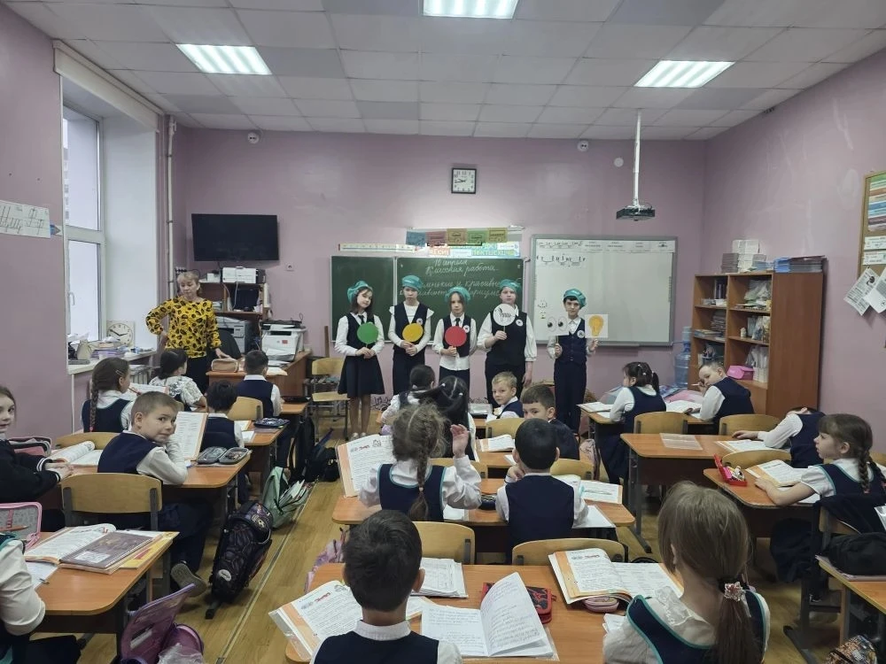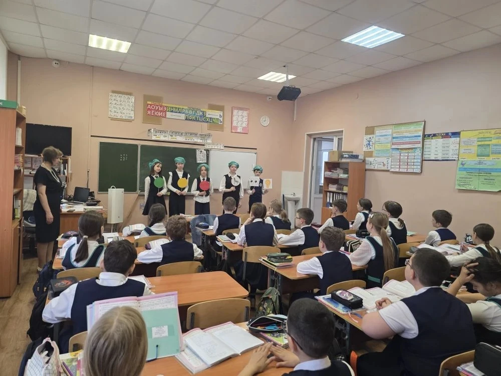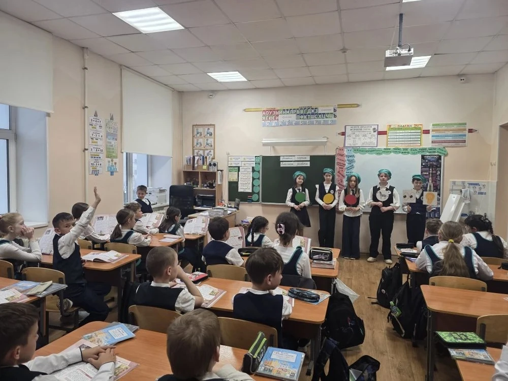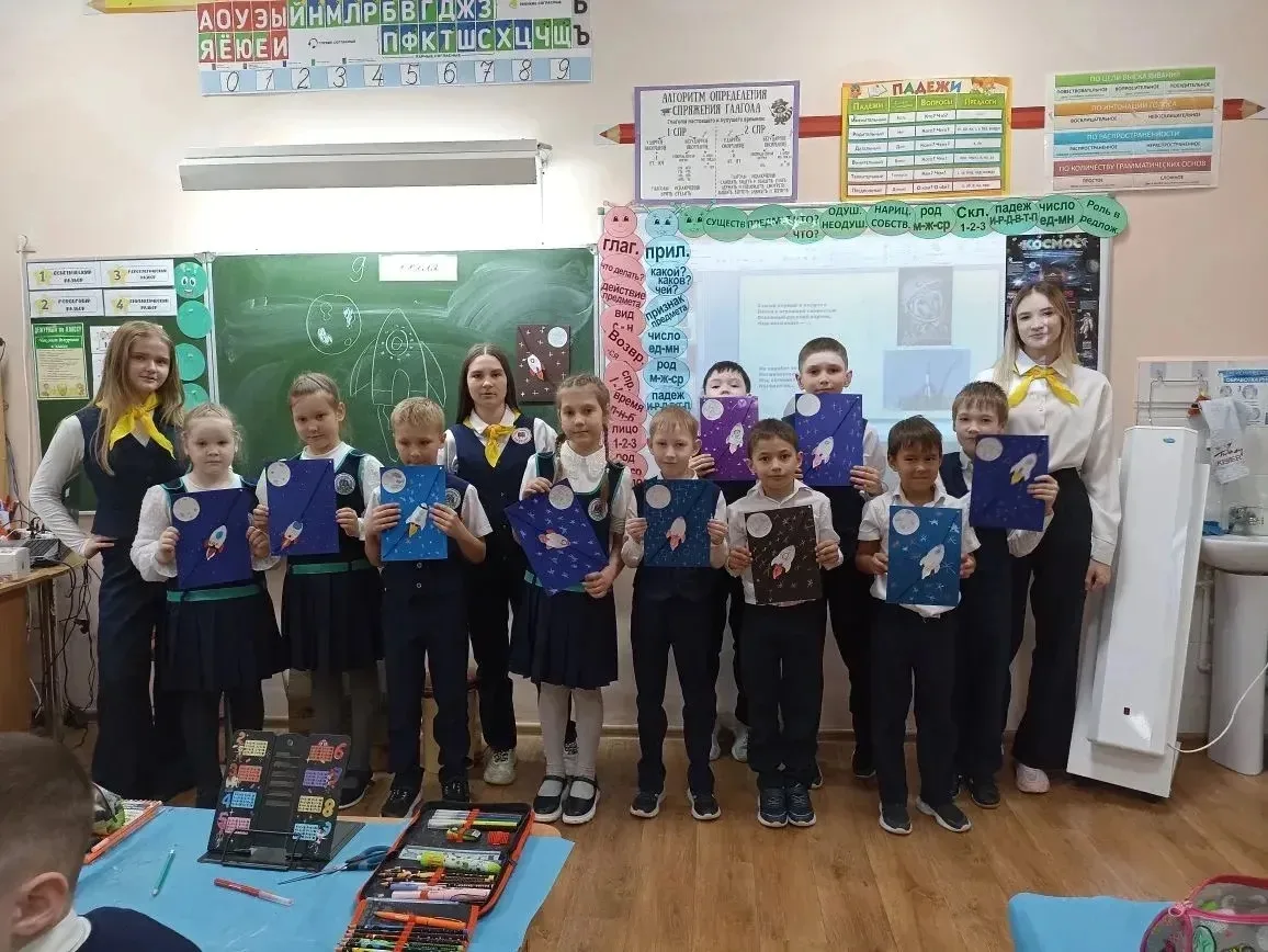 советник директора по воспитанию и старшиелассники провели увлекательный тематический классный час для учеников начальной школы☄️