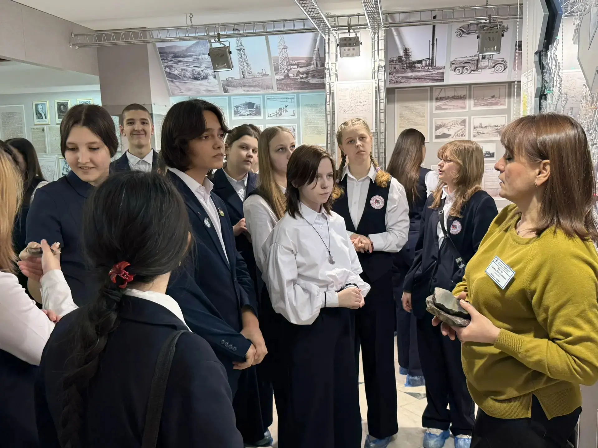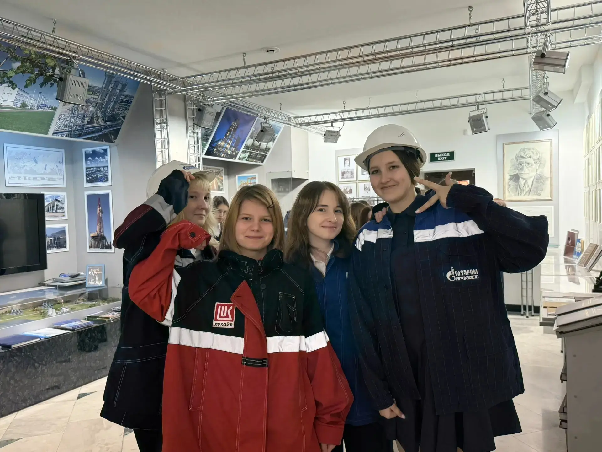 Также девятиклассники посетили музей университета, где примерили настоящую форму студентов и костюмы спонсоров. Ребятам показали коллекцию полезных ископаемых: можно было не только посмотреть, но и потрогать их руками и даже понюхать нефть! 🛢️