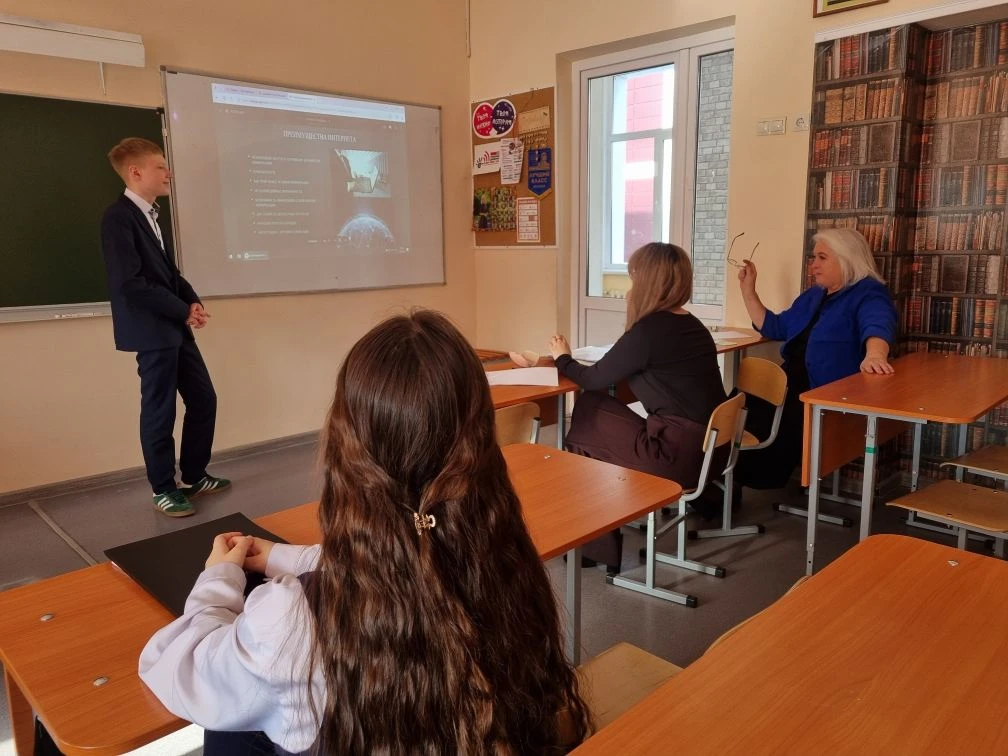 Затем ученики пошли в свои кабинеты на классный час "Разговор о важном" посвященный Дню космонавтики.