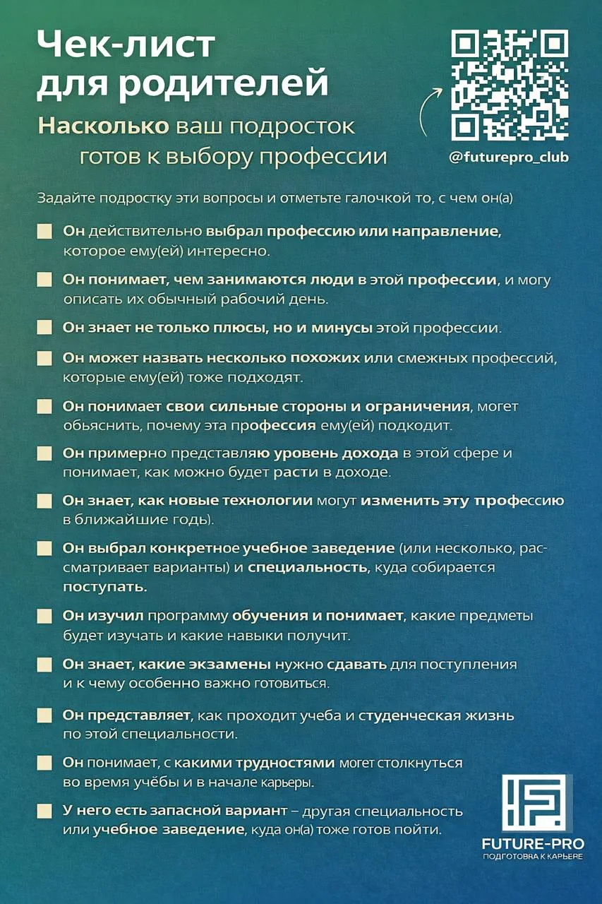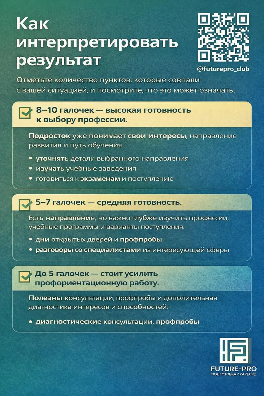 ℹ️насколько ваш подросток действительно готов к выбору профессии.
