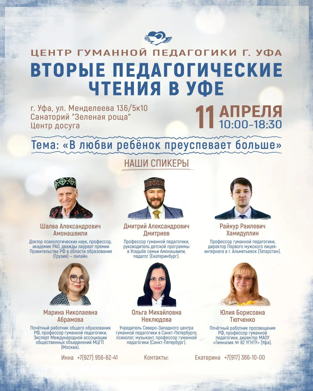 Сегодня, 11 апреля 2026 года, в одном из красивейших санаториев Уфы "Зеленая роща", в центре досуга, по адресу: ул. Менделеева 136/5к10, проходит замечательное событие: Вторые педагогические чтения по Гуманной педагогике в городе Уфа.