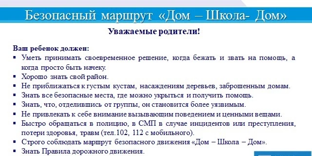Напоминаем ключевые правила безопасного маршрута. Прочитайте их с детьми еще раз: