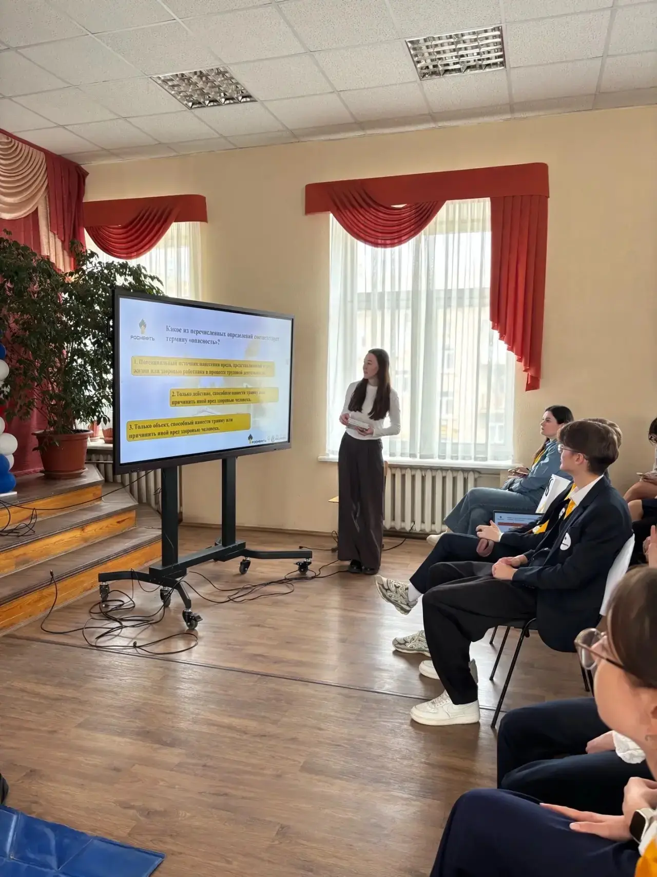 ✅Урок начался с просмотра тематического видеоролика, посвященного алгоритмам действий при возникновении различных аварийных ситуаций. Наглядный формат позволил ребятам увидеть, как четкое соблюдение инструкций и слаженность действий помогают локализовать риски на сложном производстве.