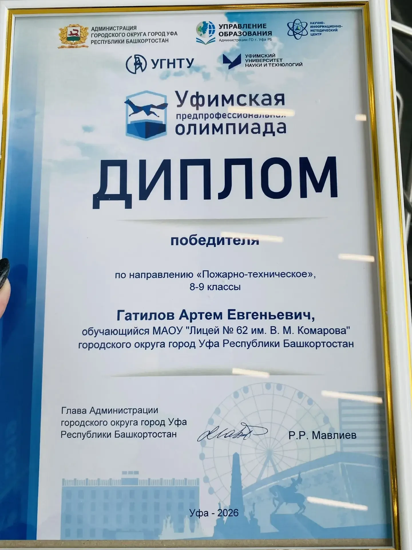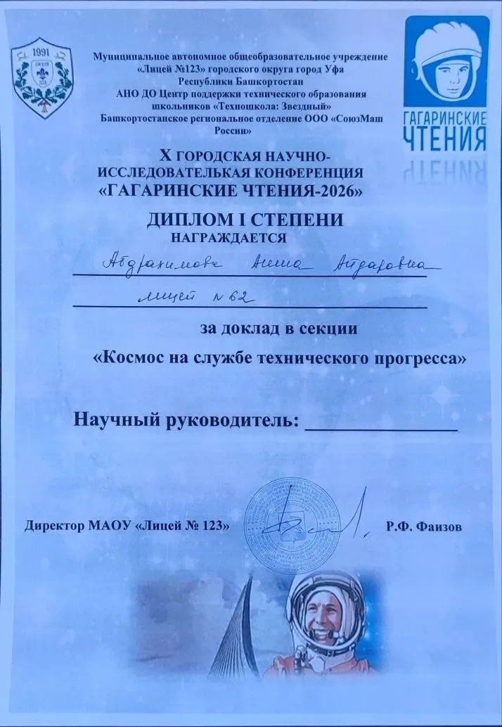 📍Комиссаренко Никита, обучающийся МАОУ «Лицей № 62 имени Комарова Владимира Михайловича» г. Уфа