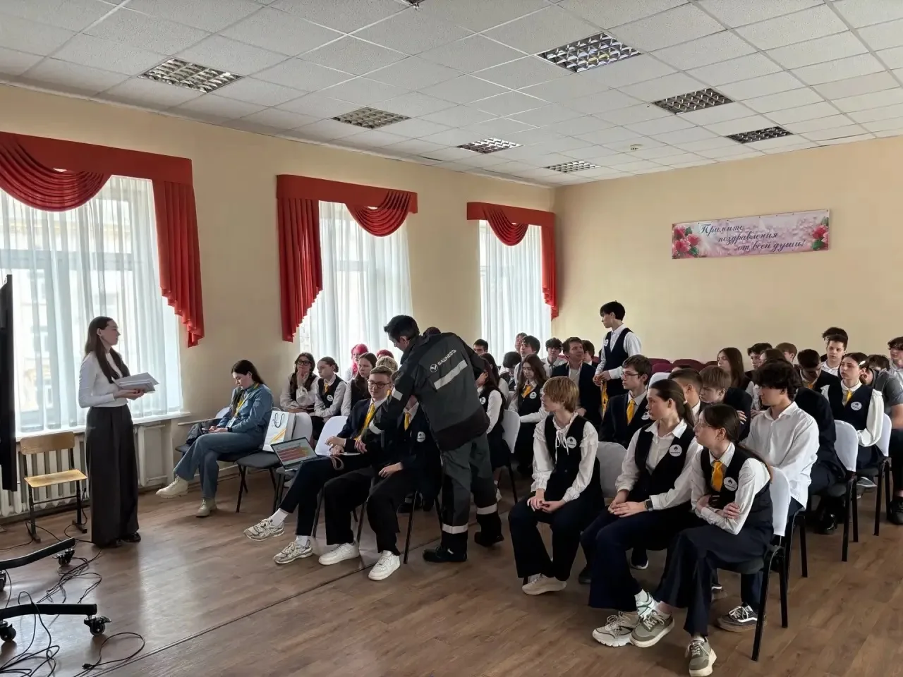 ✅В ходе беседы с учащимися, прапорщик Мельников поделился своим богатым опытом и рассказал о важности осознанного выбора будущей профессии, особенно в контексте служения Отечеству. Особое внимание было уделено вопросам военного образования: его преимуществам, возможностям, которые оно открывает, и путям поступления в профильные учебные заведения.