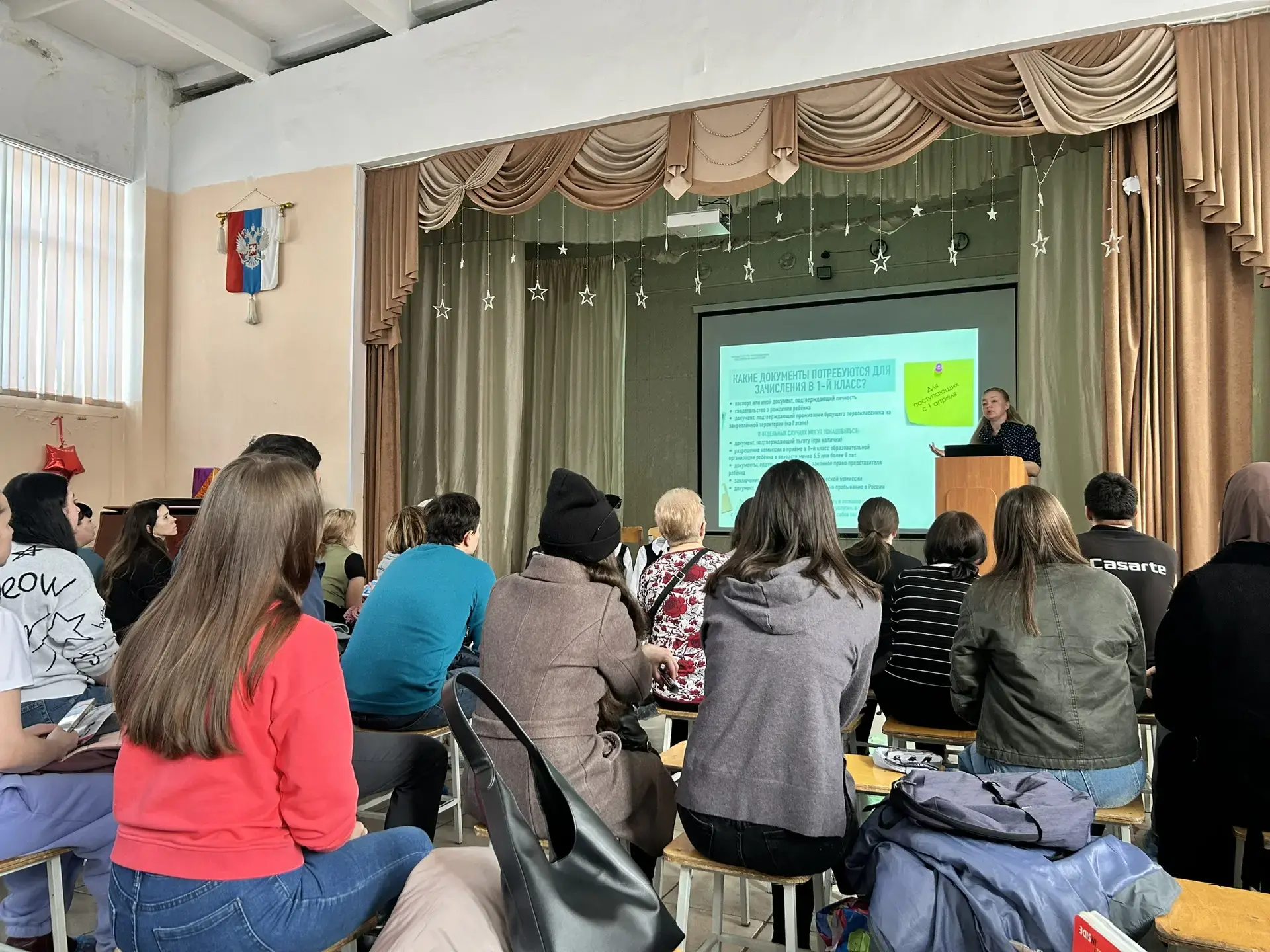 В МАОУ школе №117 состоялось организационное собрание для родителей будущих первоклассников. Заместитель директора Жерновкова О. В. разъяснили правила приёма детей в образовательное учреждение, а также дала советы, как сделать переход к школьной жизни максимально комфортным и радостным.