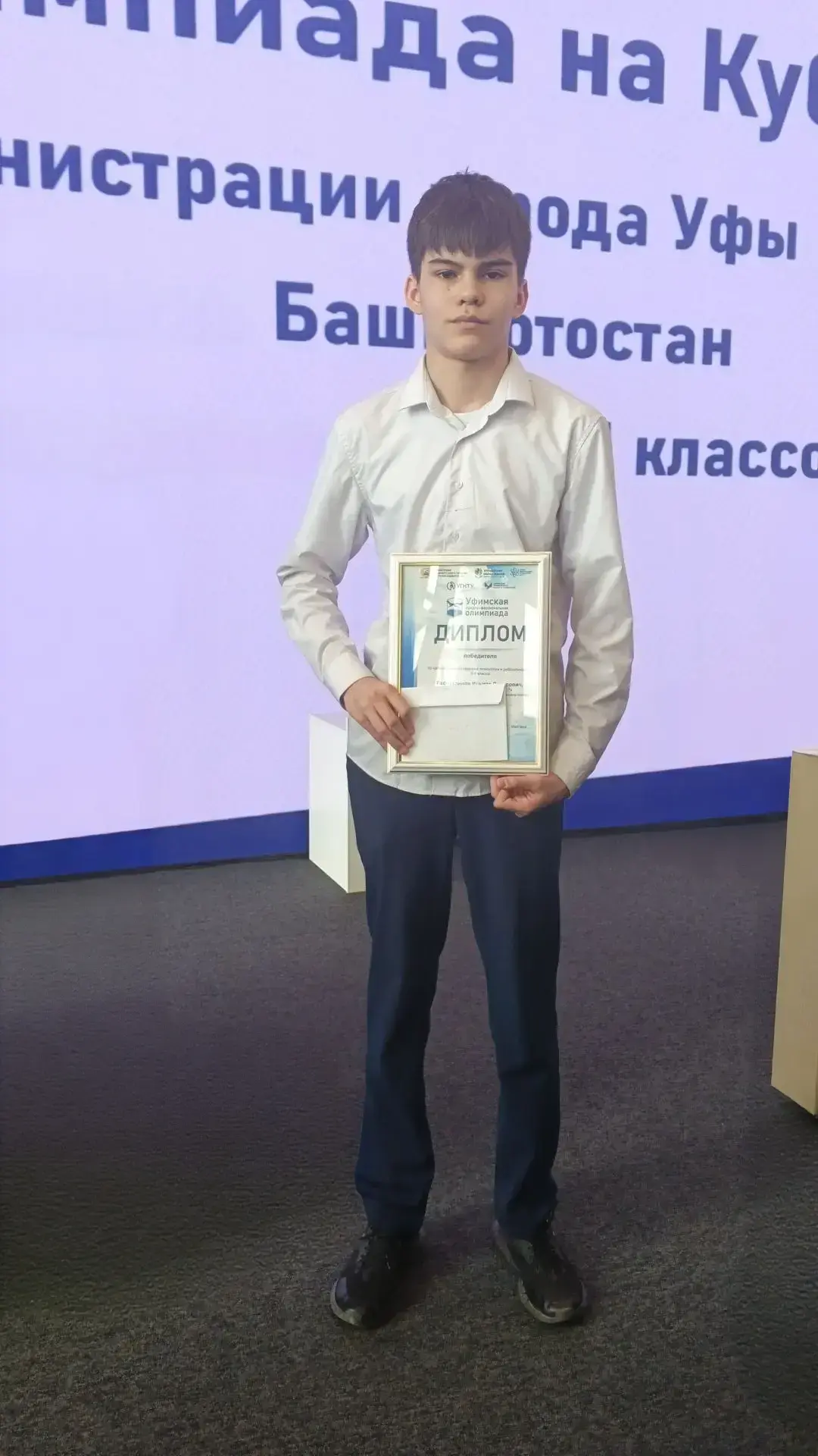 Поздравляем Рафгутдинова Ильнара, 8Б класс победителя Уфимской предпрофессиональной олимпиады. Направление: Цифровые технологии и робототехника.