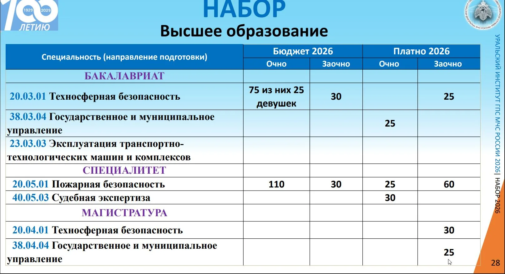 План набора – 75 человек.