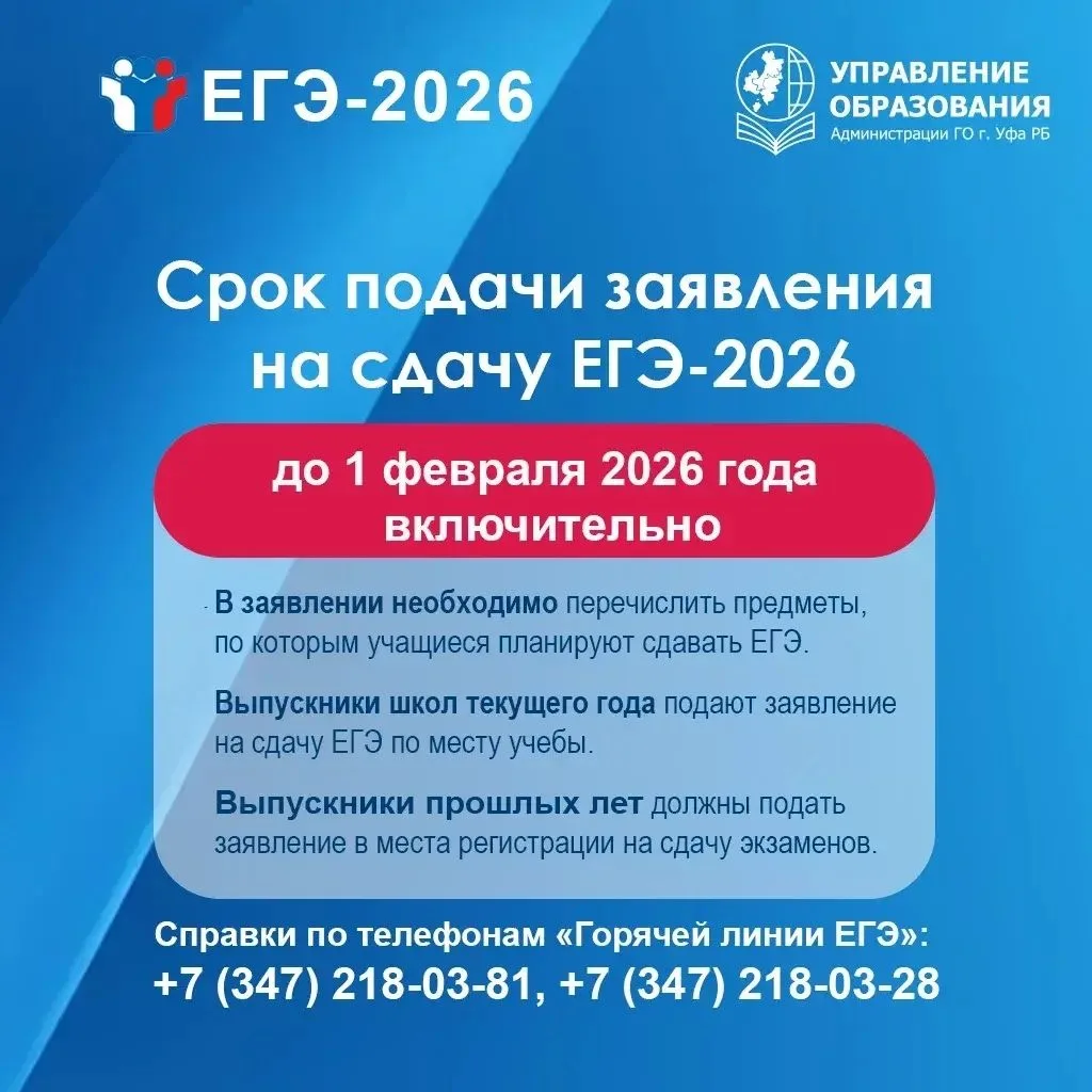 Срок подачи заявления на сдачу ЕГЭ-2026 до 1 февраля 2026 года включительно.