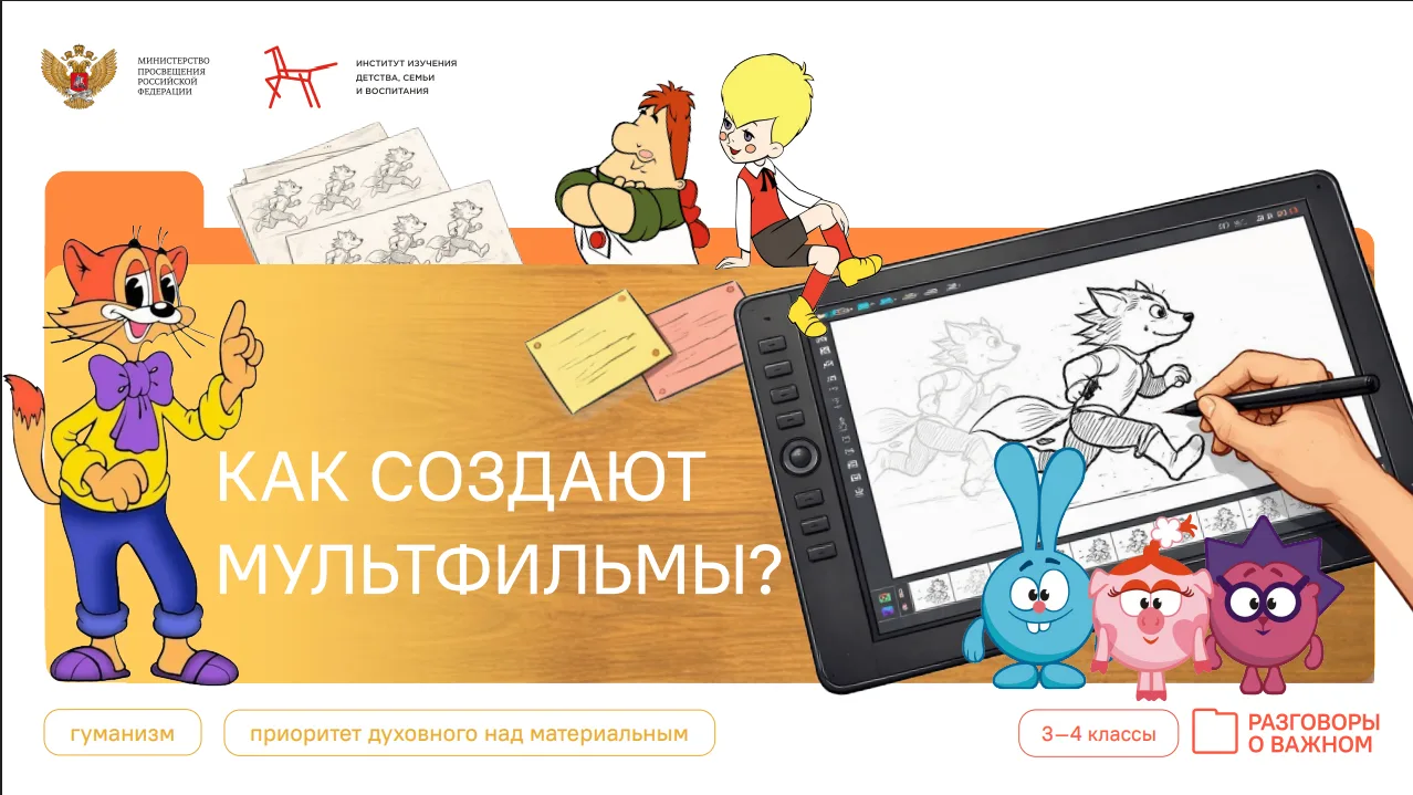 В продолжение дня для обучающихся прошло занятие в рамках проекта «Разговоры о важном». Тема встречи — «Как создаются мультфильмы?» — вызвала искренний интерес у ребят.