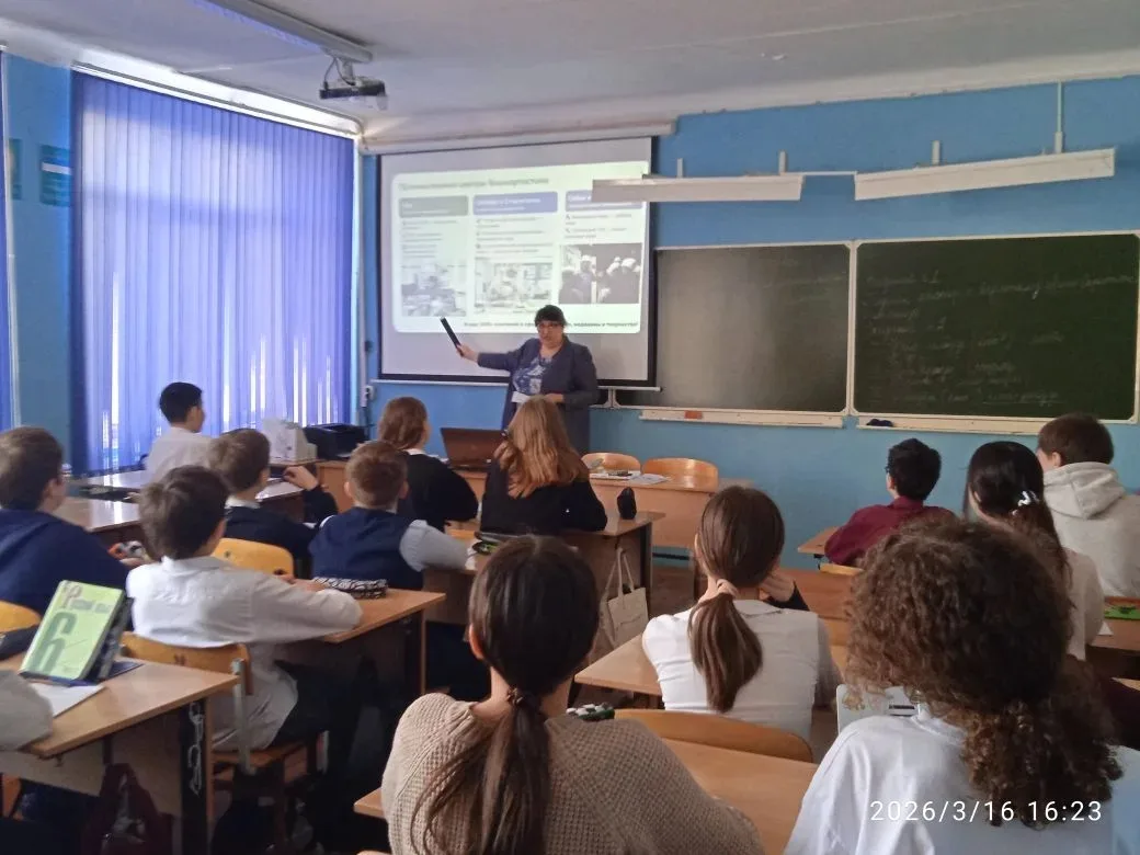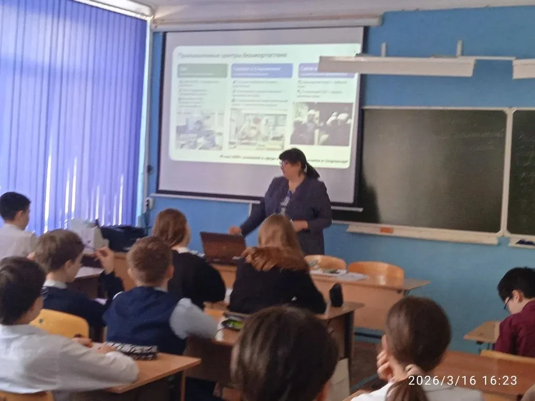 Возможности образования и стратегии поступления» профориентационное занятие». Данный курс реализуется в рамках Единой модели профориентации «Билет в будущее». Во время урока обучающиеся узнали о промышленных отраслях РБ, получили информацию о ведущих колледжах и ВУЗах. Данные занятия должны помочь школьникам в будущем определиться с выбором своего образовательного пути.
