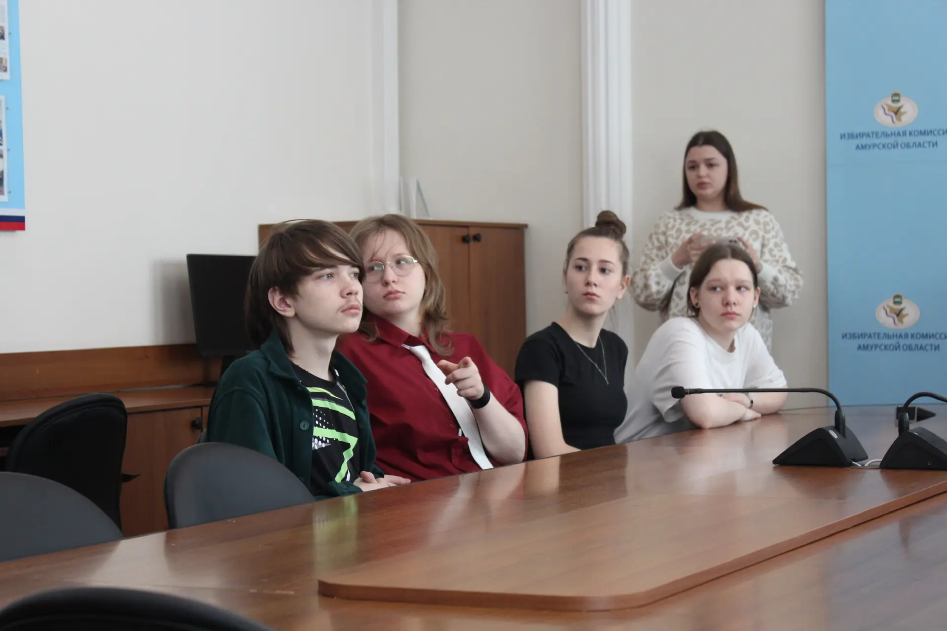 В избирательной комиссии Амурской области прошла необычная встреча. В гости пришли воспитанники школы-интерната № 8 — слабослышащие ребята, которым в будущем предстоит участвовать в выборах.