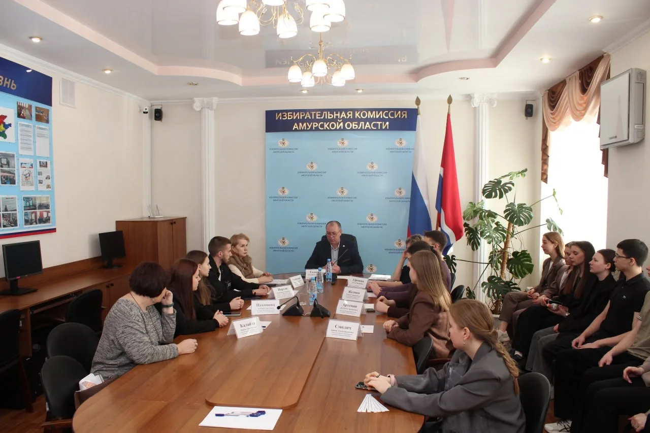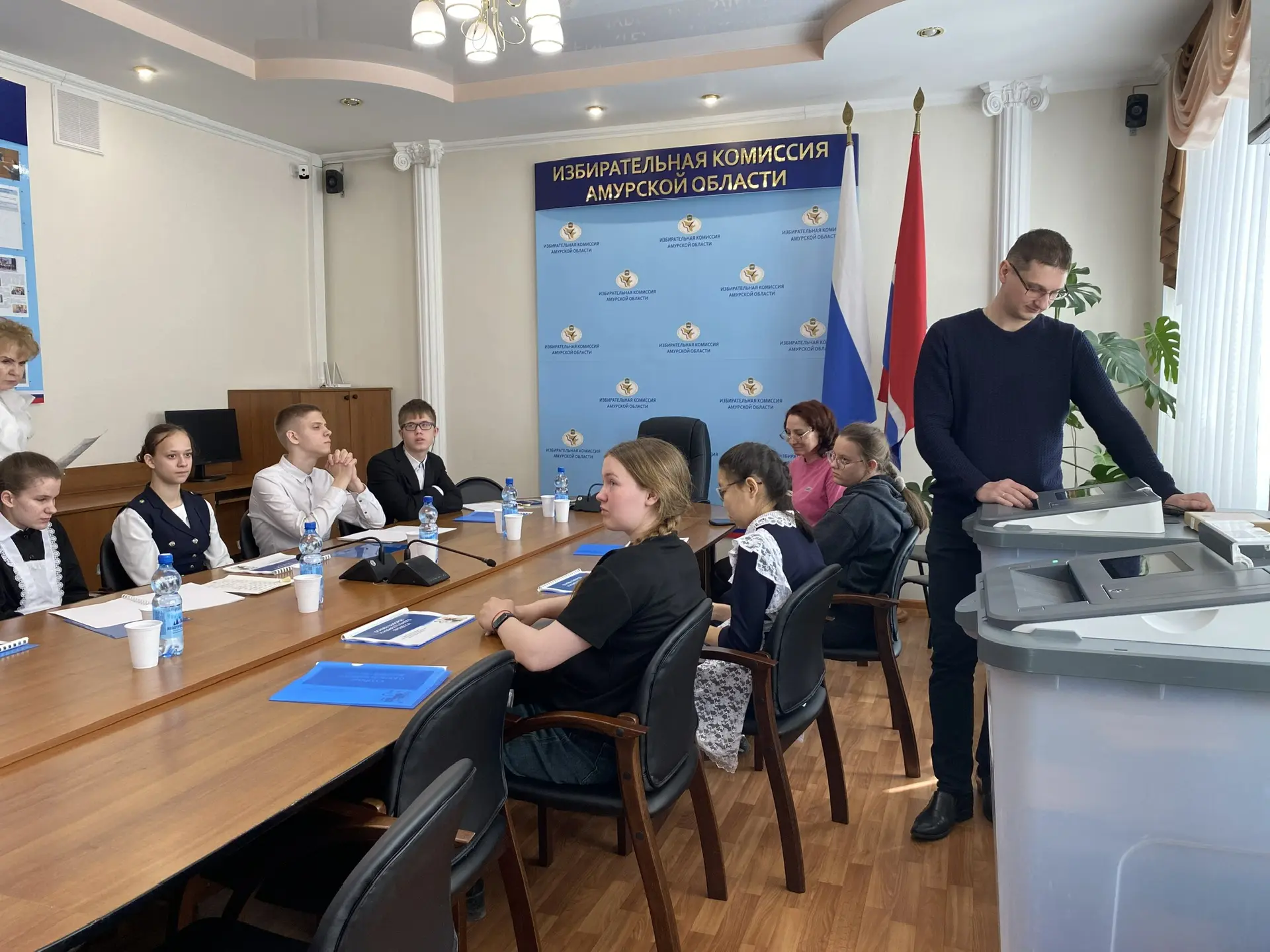 Встречу открыл председатель Амуризбиркома Руслан Головин, который познакомил старшеклассников с деятельностью комиссии. Затем им устроили краткий экскурс в историю выборов — от Древней Руси до наших дней, также школьникам показали видеоролики о том, как голосуют в разных уголках области, даже в самых отдаленных местах.