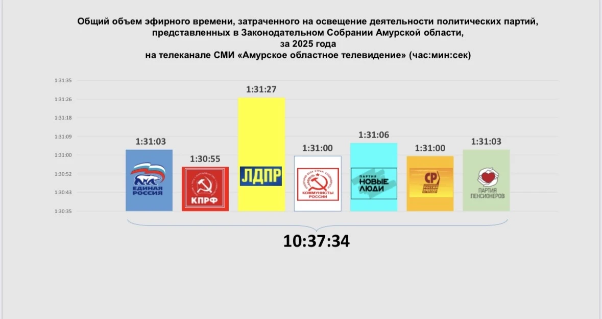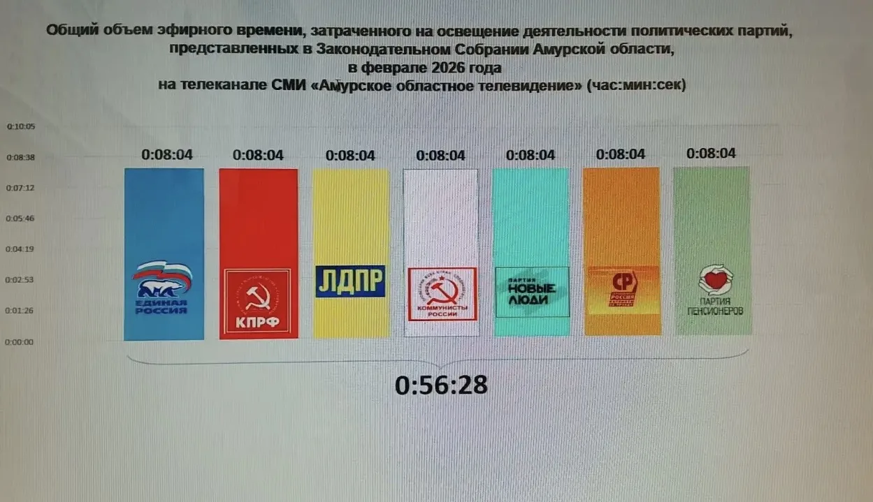 ⏰В Амуризбиркоме подсчитали, сколько времени в мартовском эфире отдали СМИ региональным политическим партиям