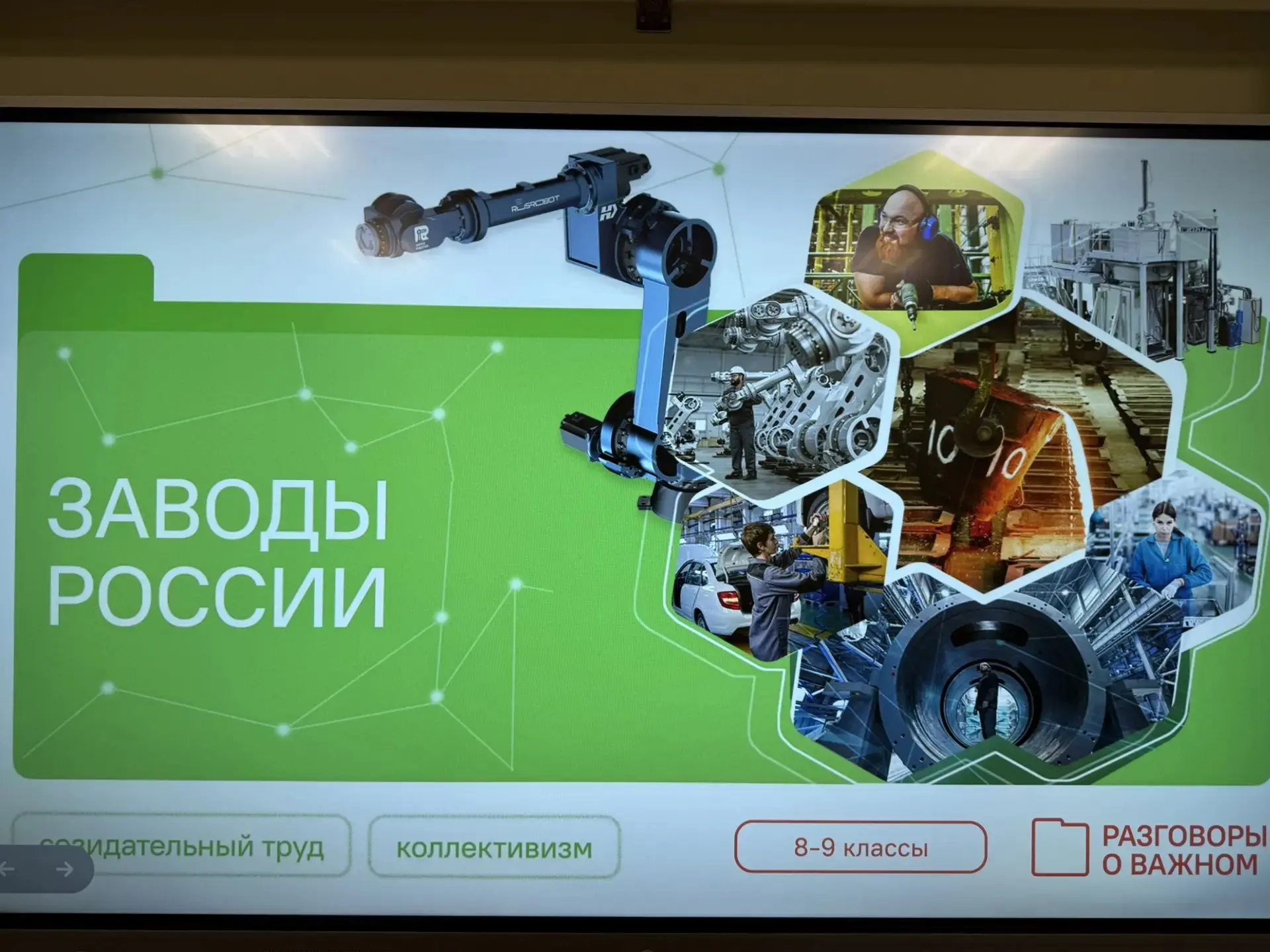 Занятие было посвящено знакомству школьников с современной промышленностью страны, её ключевыми достижениями, приоритетами развития и ролью заводов в жизни государства.