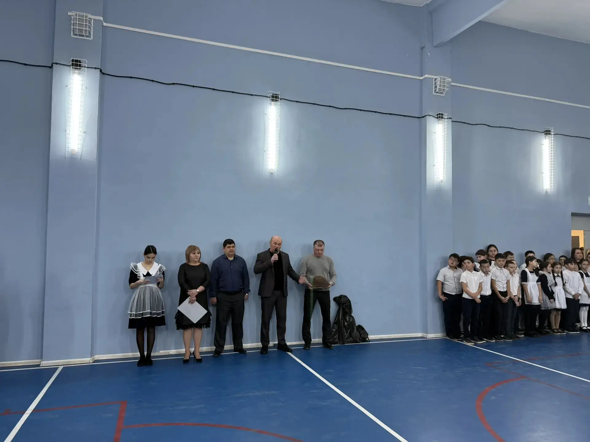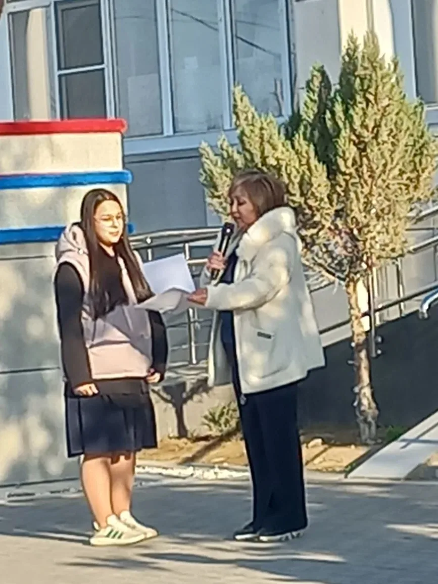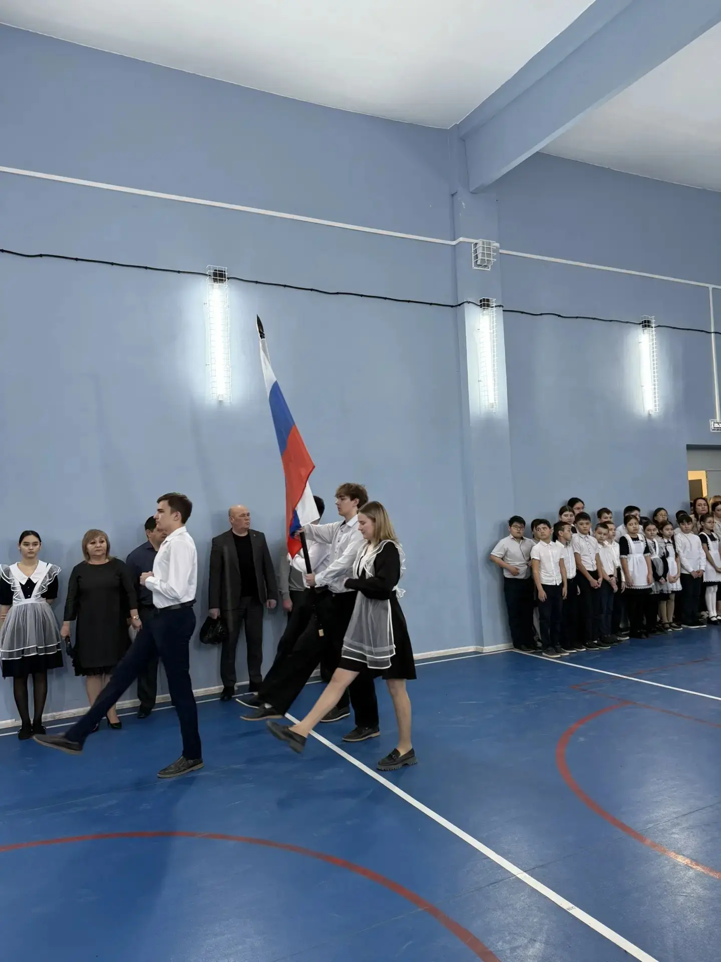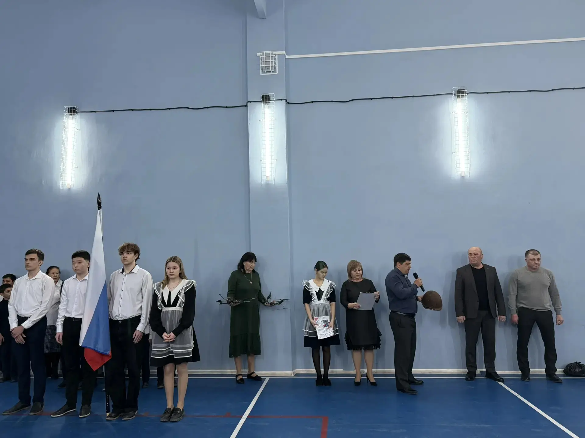Сегодня прошла еженедельная торжественная линейка, посвящённая важному событию- передаче исторических предметов школьному музею.