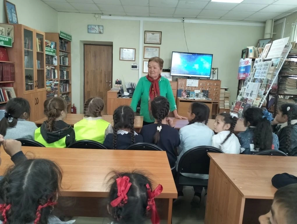 Группа продлённого дня в сопровождении Булатовой А.З. и Джумановой М.Х. посетили сельскую библиотеку, куда их пригласила библиотекарь Газизя Темиргалиевна.