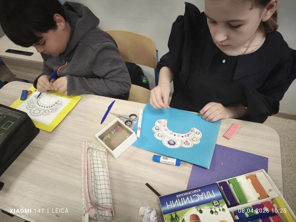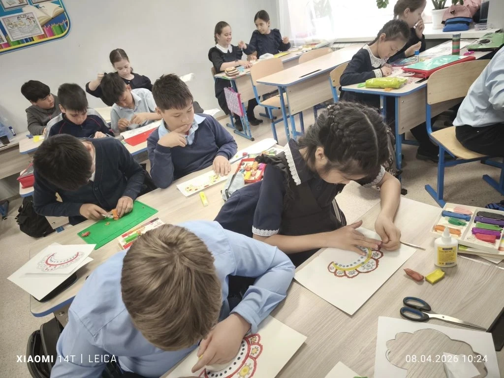 Ученики 4 класса выполнили один элемент из национального костюма!