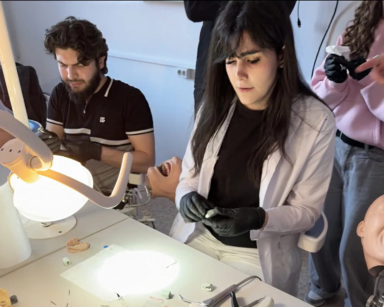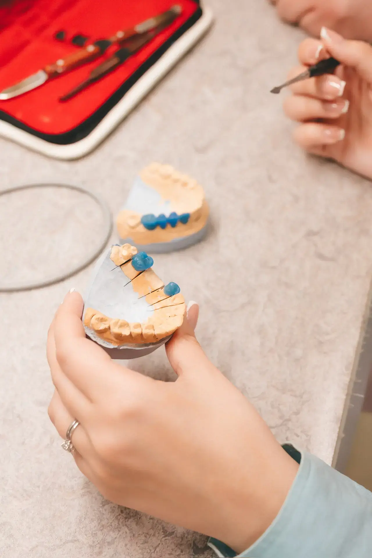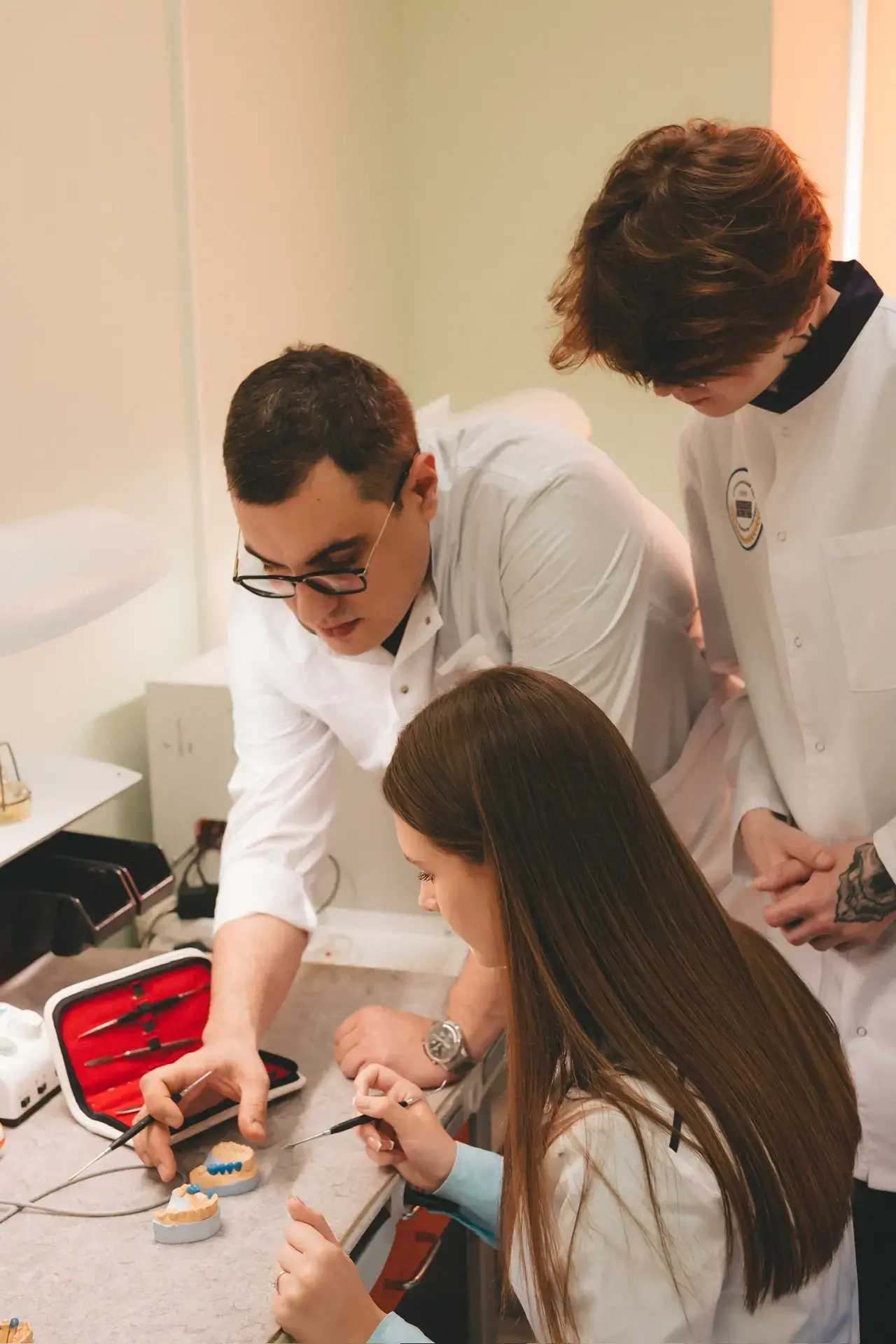 Под руководством преподавателей ребята познакомились с современным оборудованием, поработали с восковыми и керамическими материалами, научились отливать гипсовые модели челюстей и получили понимание того, как выстроена связь между клиникой и лабораторией.
