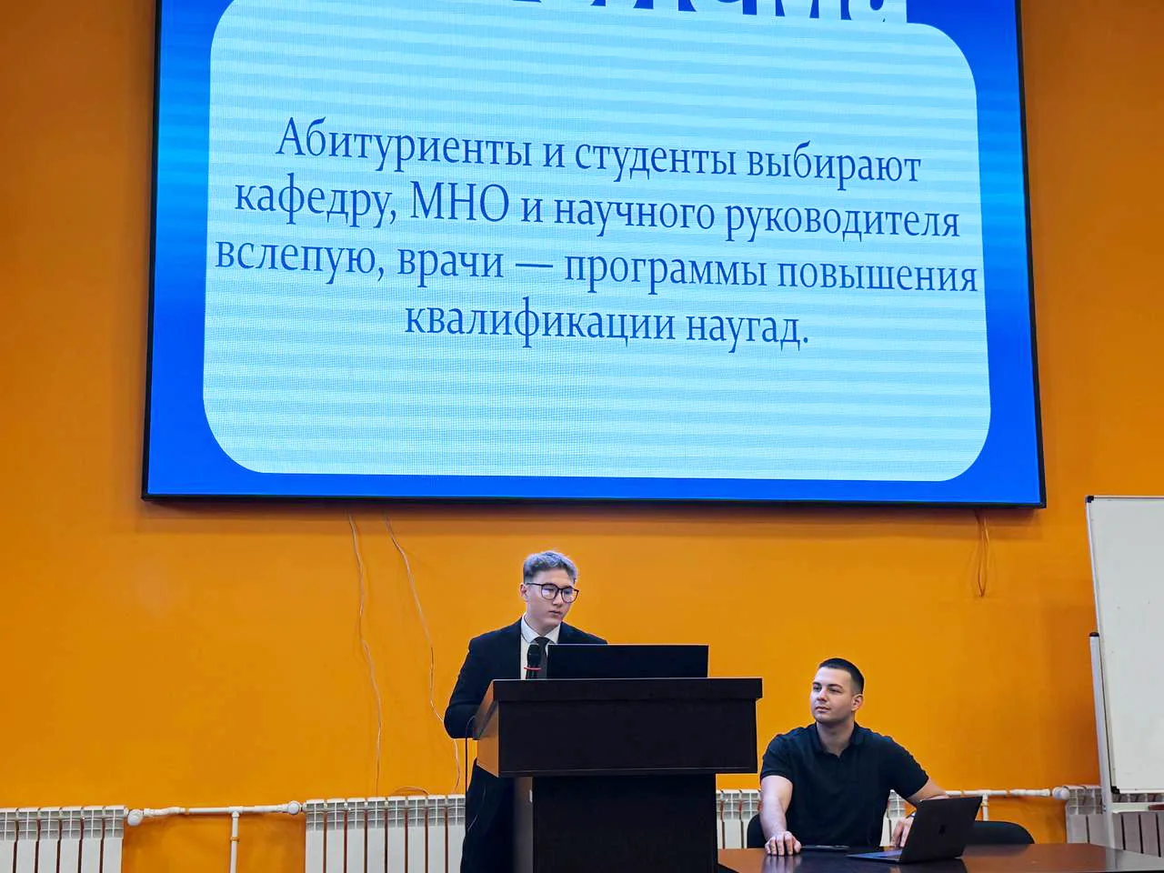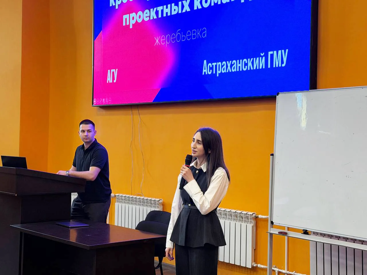 Астраханский ГМУ представили члены Совета молодых ученых Минздрава России — руководитель Молодежного проектного офиса, к.м.н. Лиана Одишелашвили и председатель Студенческого научного общества Грант Мирзоян.