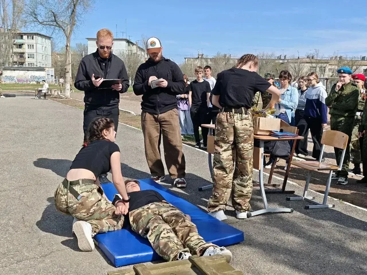 Они оценивали, как юные участники справляются с оказанием помощи пострадавшим в различных, максимально приближенных к реальности условиях: правильность наложения жгутов, повязок, алгоритм действий.