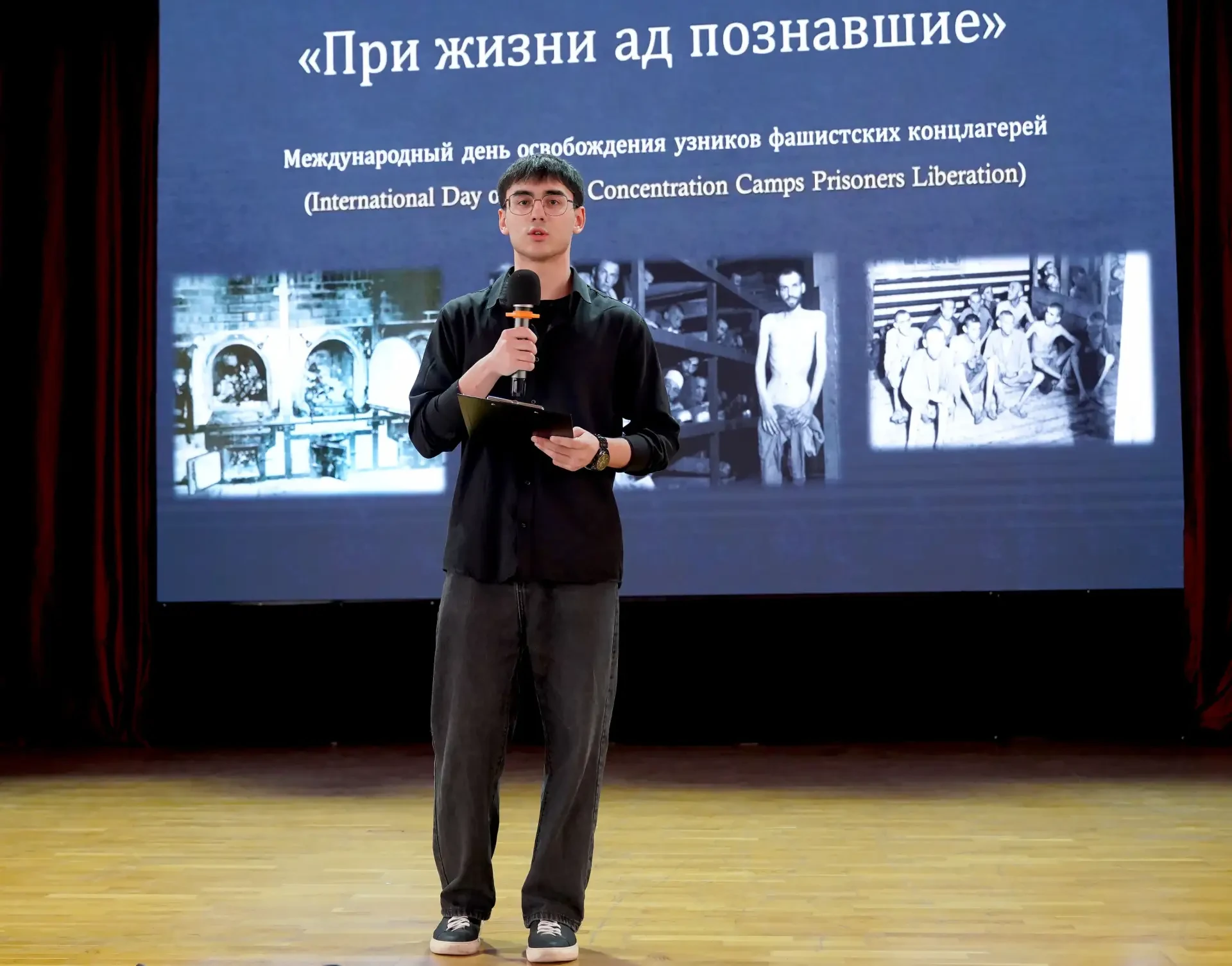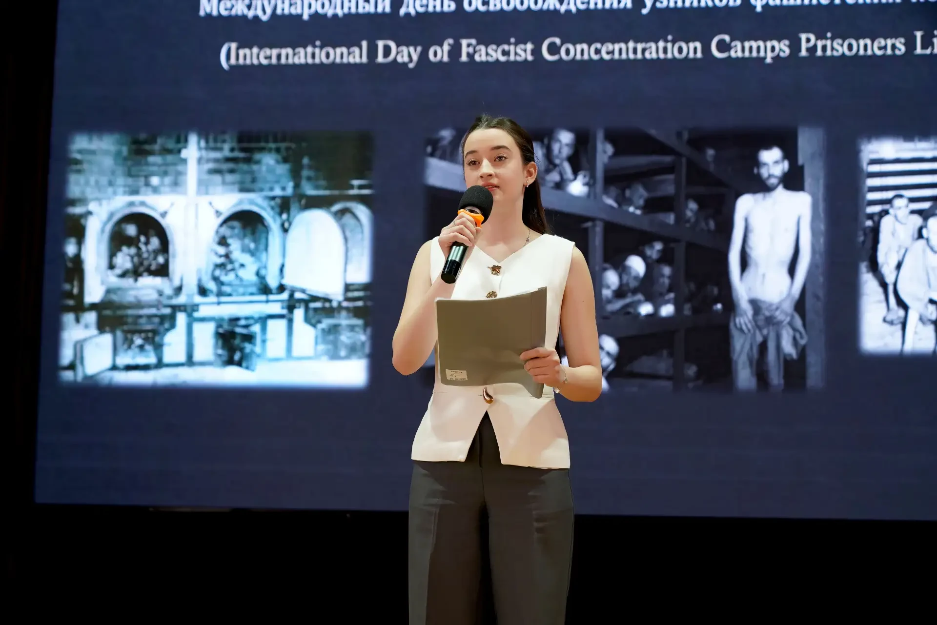 Сотрудниками кафедры иностранных и латинского языков и студентами лечебного и педиатрического факультетов были подготовлены архивные материалы о самом немыслимом и страшном из зверств фашизма - концентрационных лагерях - лагерях смерти, фабриках смерти, таких как Майданек, Треблинке, Освенцим, Дахау, Бухенвальд. В исполнении студентов проникновенно прозвучали стихи о войне. В мероприятие были включены фрагменты фильма Михаила Ромма «Обыкновенный фашизм». Эти кадры, не утратившие актуальности и на сегодняшний день, не оставляют равнодушным никого: глядя в глаза жертв, каждый понимает, что фашизм не имеет национальности — у него только одно лицо, лицо палача.