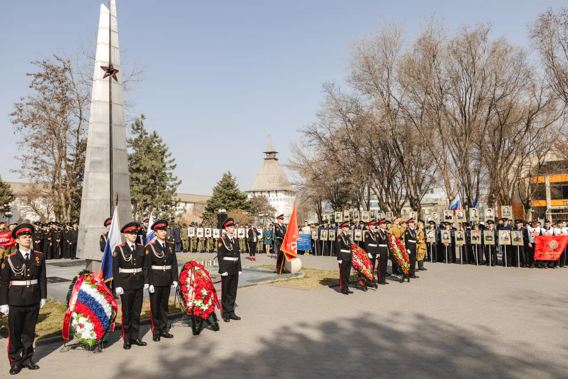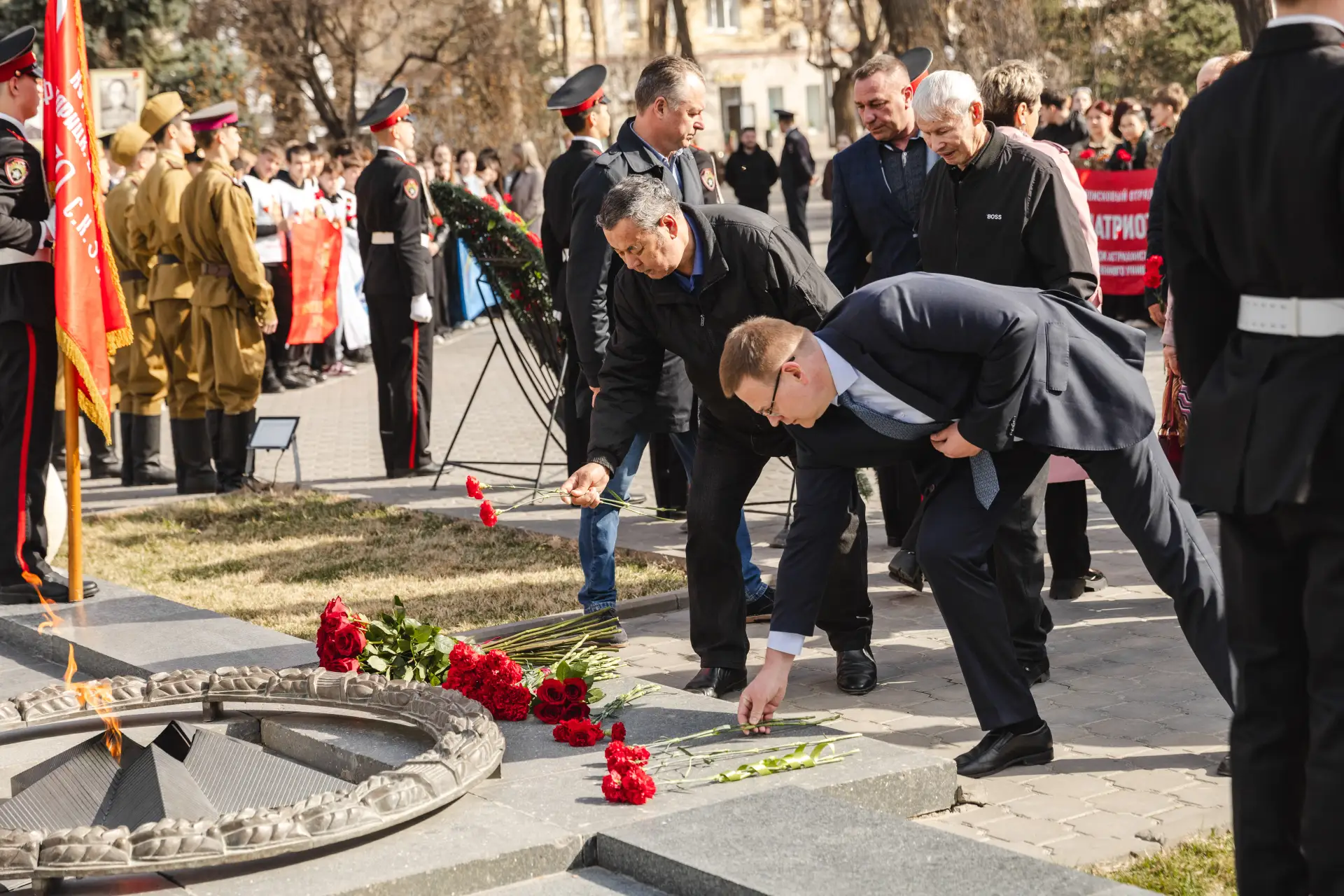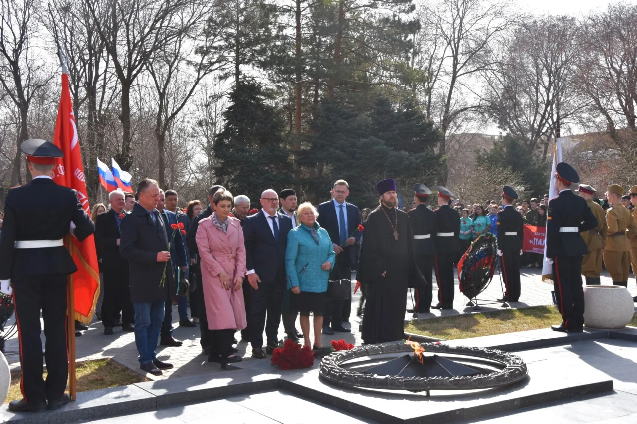 Участники мероприятия возложили цветы к Вечному огню, отдав дань глубокого уважения воинам, павшим в годы Великой Отечественной войны, а также героям специальной военной операции, проявившим мужество и отвагу при защите интересов России. Присутствующие почтили память всех защитников Отечества, чьи жизни были отданы ради мирного будущего страны. В ходе торжественной церемонии была объявлена минута молчания в знак благодарности и вечной памяти поколений защитников Родины.