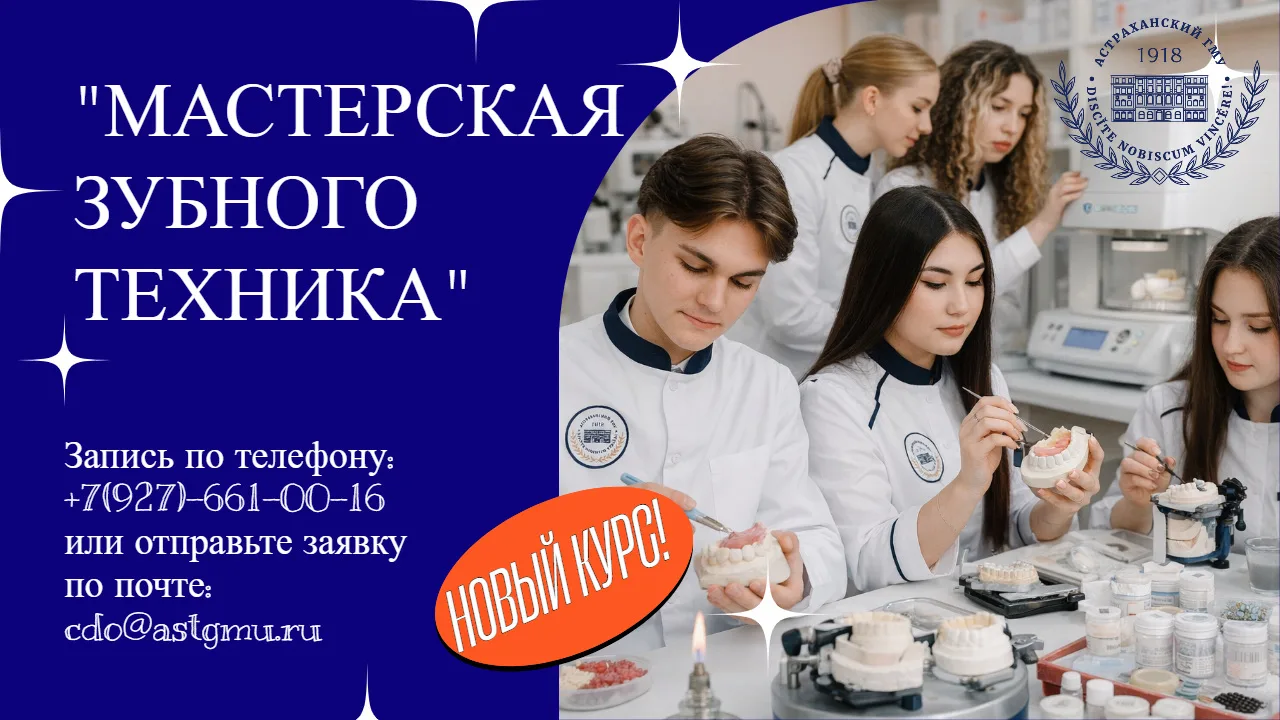 2 апреля 2026 г. - кафедра ортопедической стоматологии Астраханского ГМУ, ул. Коммунистическая, 9а.