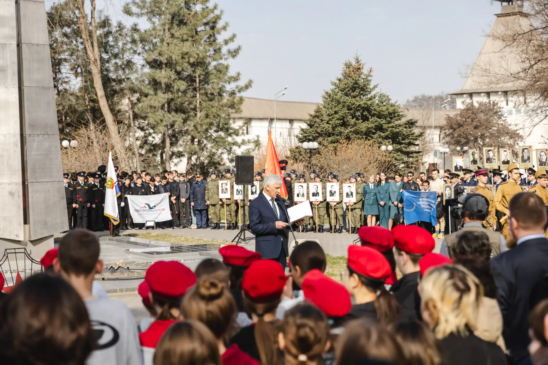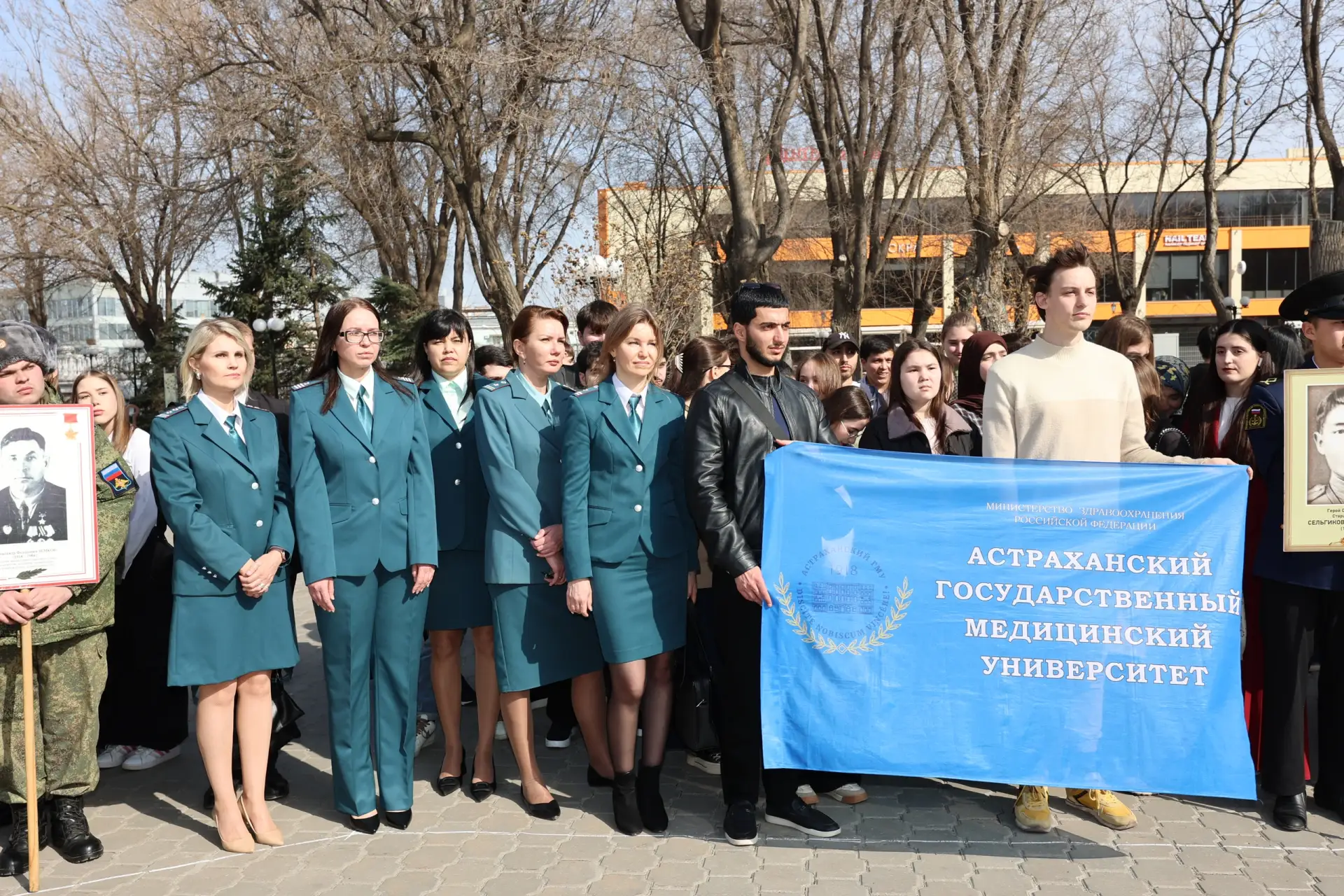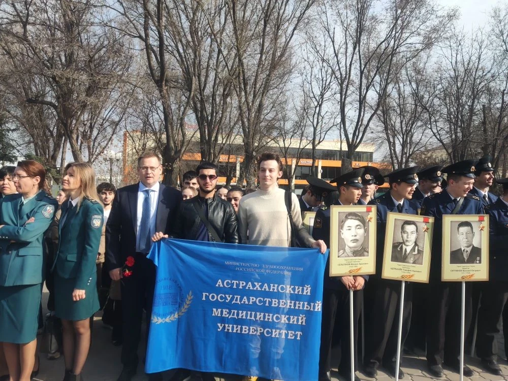 Ректор Астраханского ГМУ Сергей Поройский, сотрудники управления молодёжной политики и воспитательной деятельности вуза и студенты приняли участие открытии Астраханской «Вахты Памяти-2026», прошедшем в рамках акции «Растим патриотов России», приуроченной к Году единства народов России.