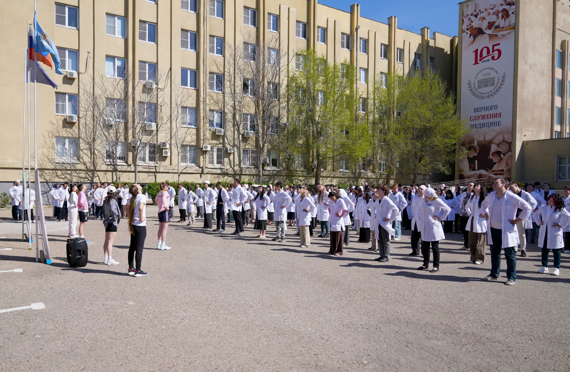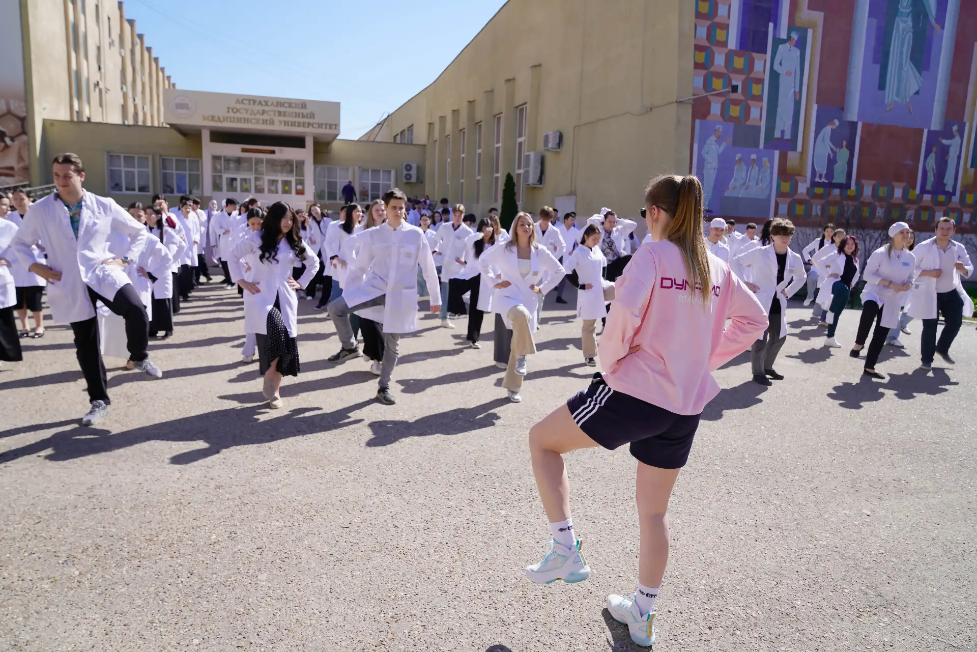 ▫️Студенты-волонтёры Астраханского ГМУ устроили массовую утреннюю зарядку сразу в четырёх корпусах университета. Участники размялись под ритмичную музыку, узнали, как 10–15 минут активности в день меняют самочувствие, и получили брошюры с лайфхаками: как победить гиподинамию и встроить движение в плотный студенческий график.