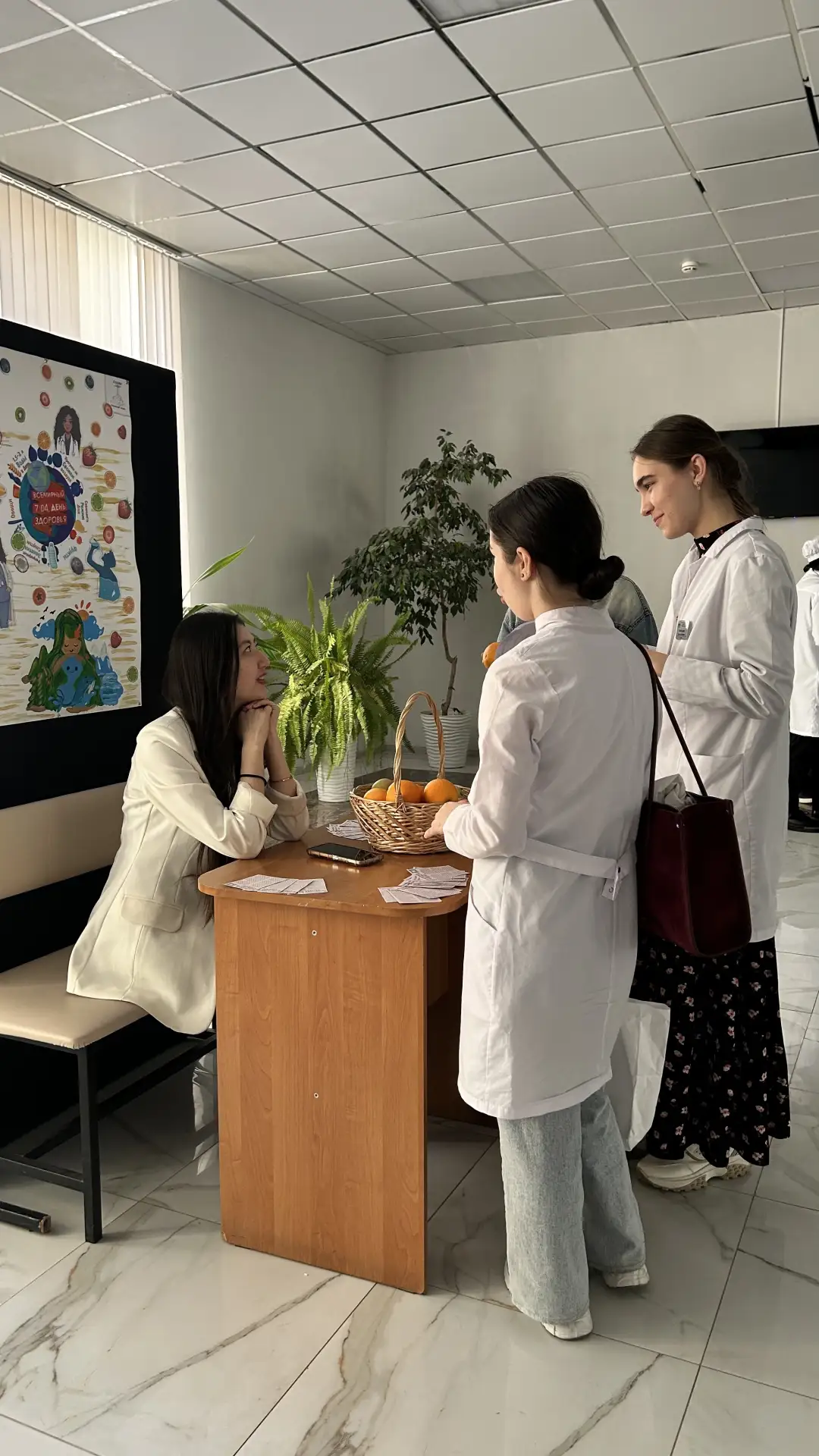 ▫️Студенты-активисты вуза создали красочную газету — гид по ЗОЖ, в которой отразили все главное: от режима дня до полезных привычек и раздавали листовки с практическими советами сотрудникам и студентам вуза.