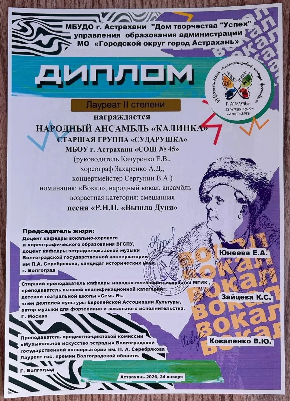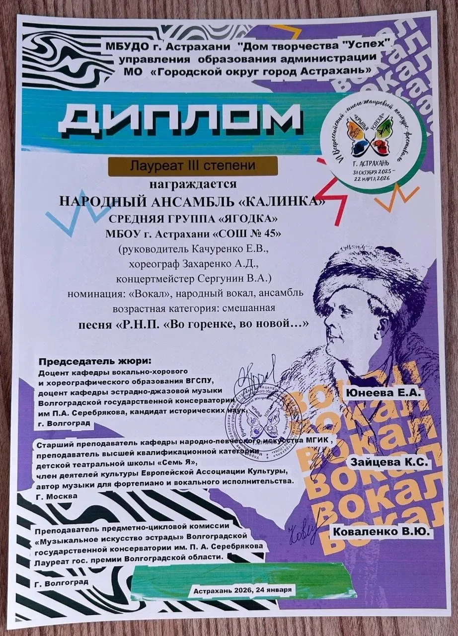 С огромной гордостью и радостью поздравляем Народный ансамбль «Калинка» с блестящей победой на Всероссийском многожанровом конкурсе-фестивале «Крылья успеха»!