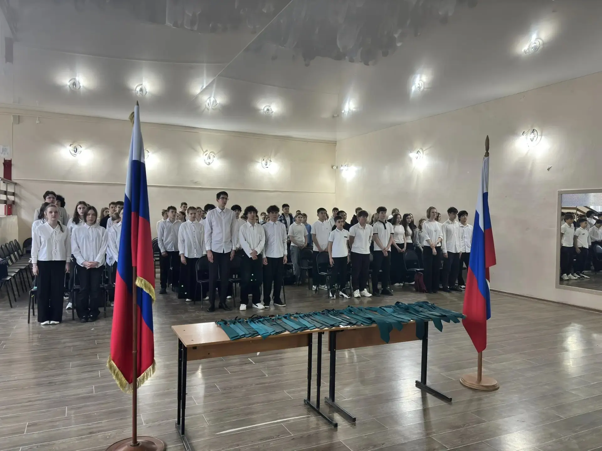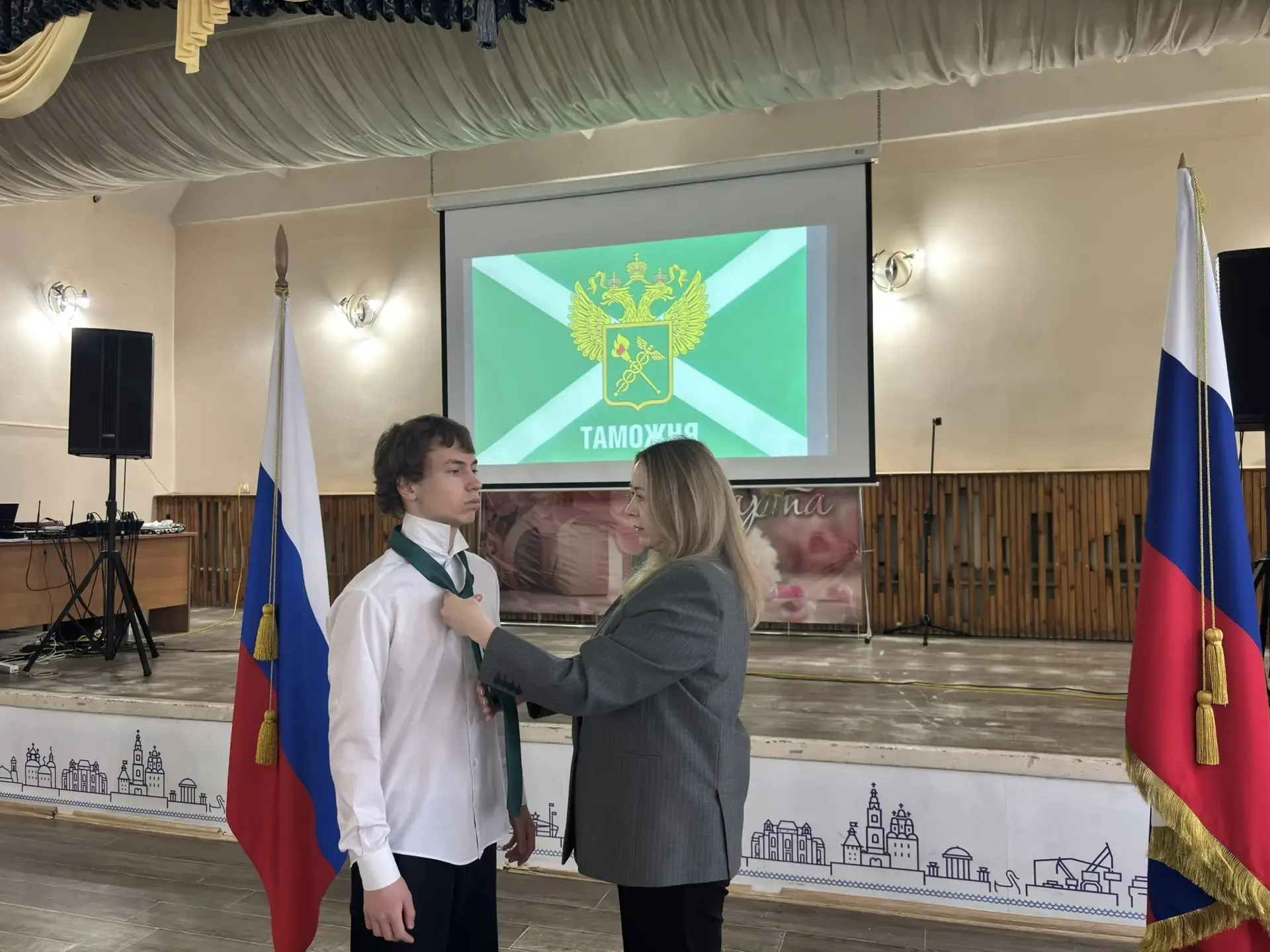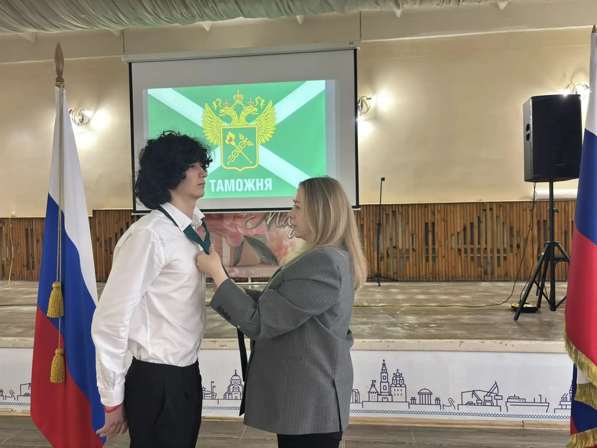 В актовом зале нашей школы состоялось торжественное событие — вручение галстуков таможенному 10 А классу.