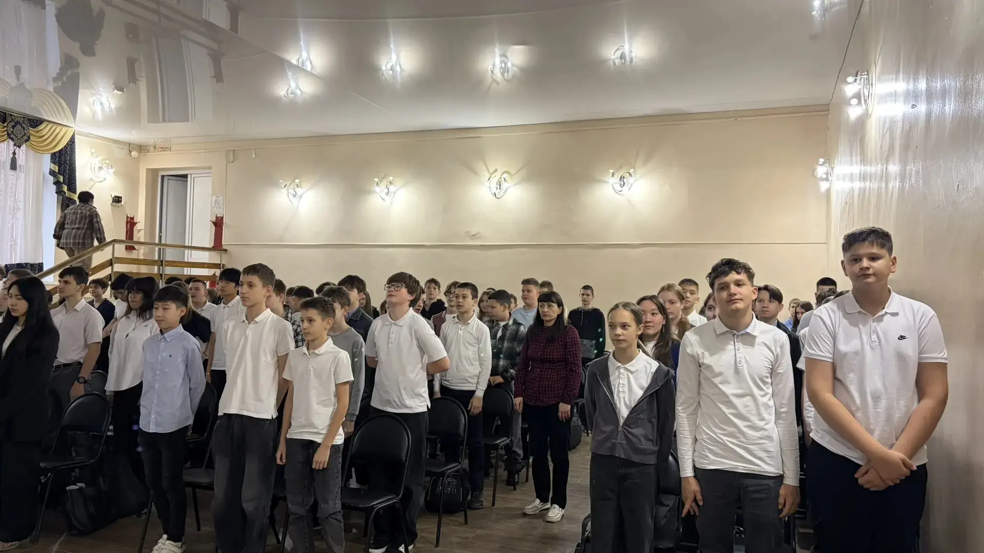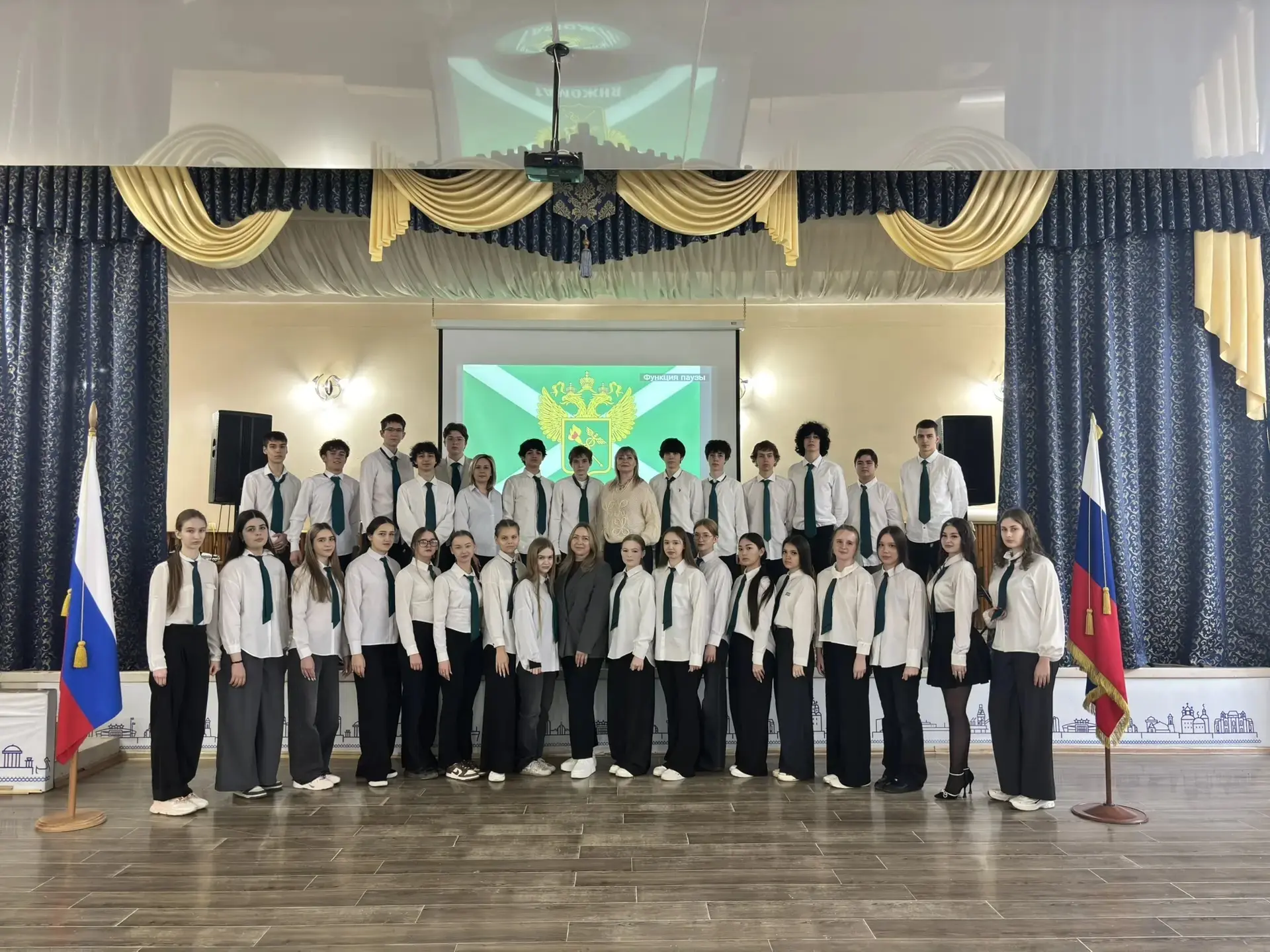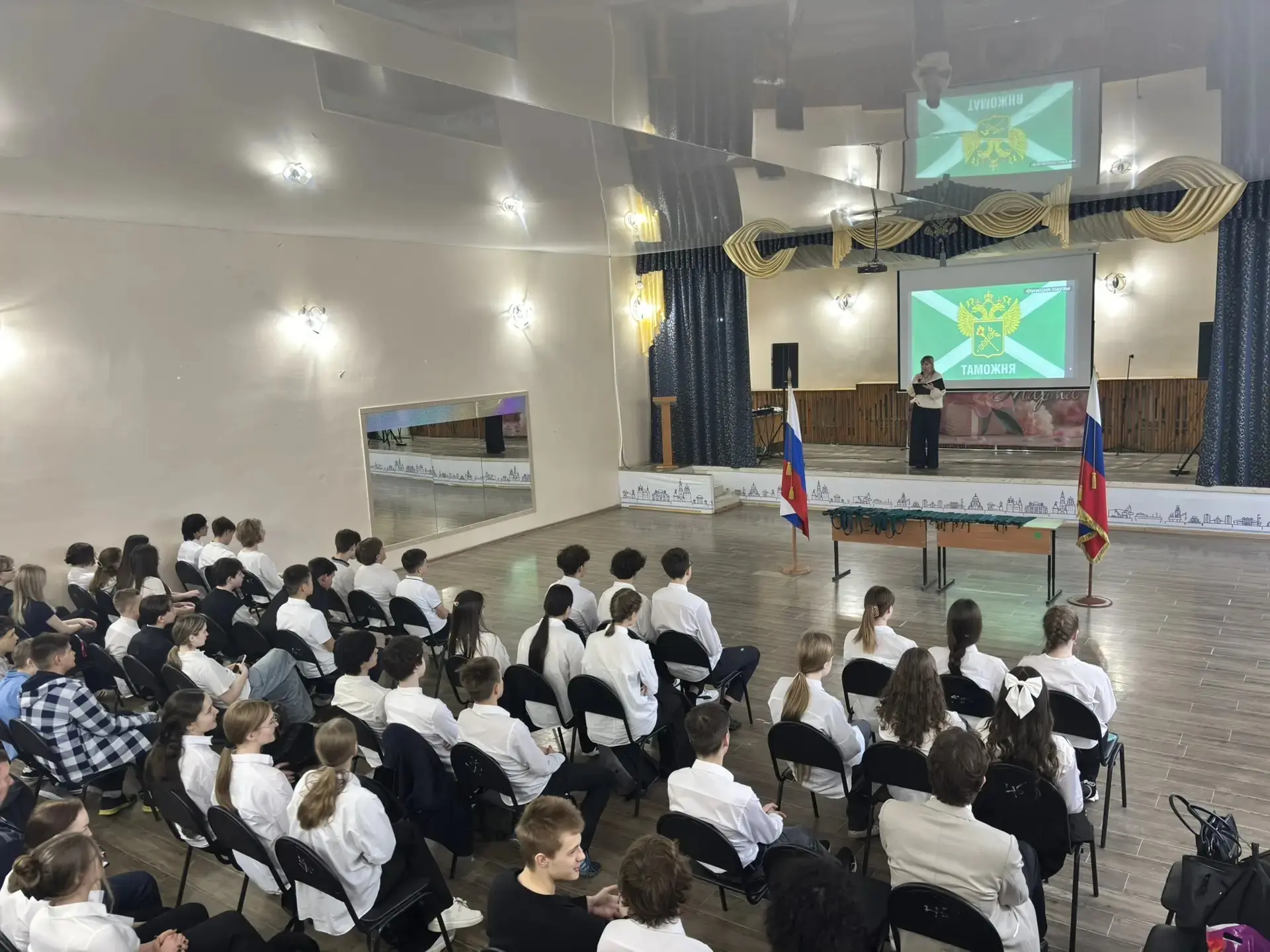 В актовом зале нашей школы состоялось торжественное событие — вручение галстуков таможенному 10 А классу.