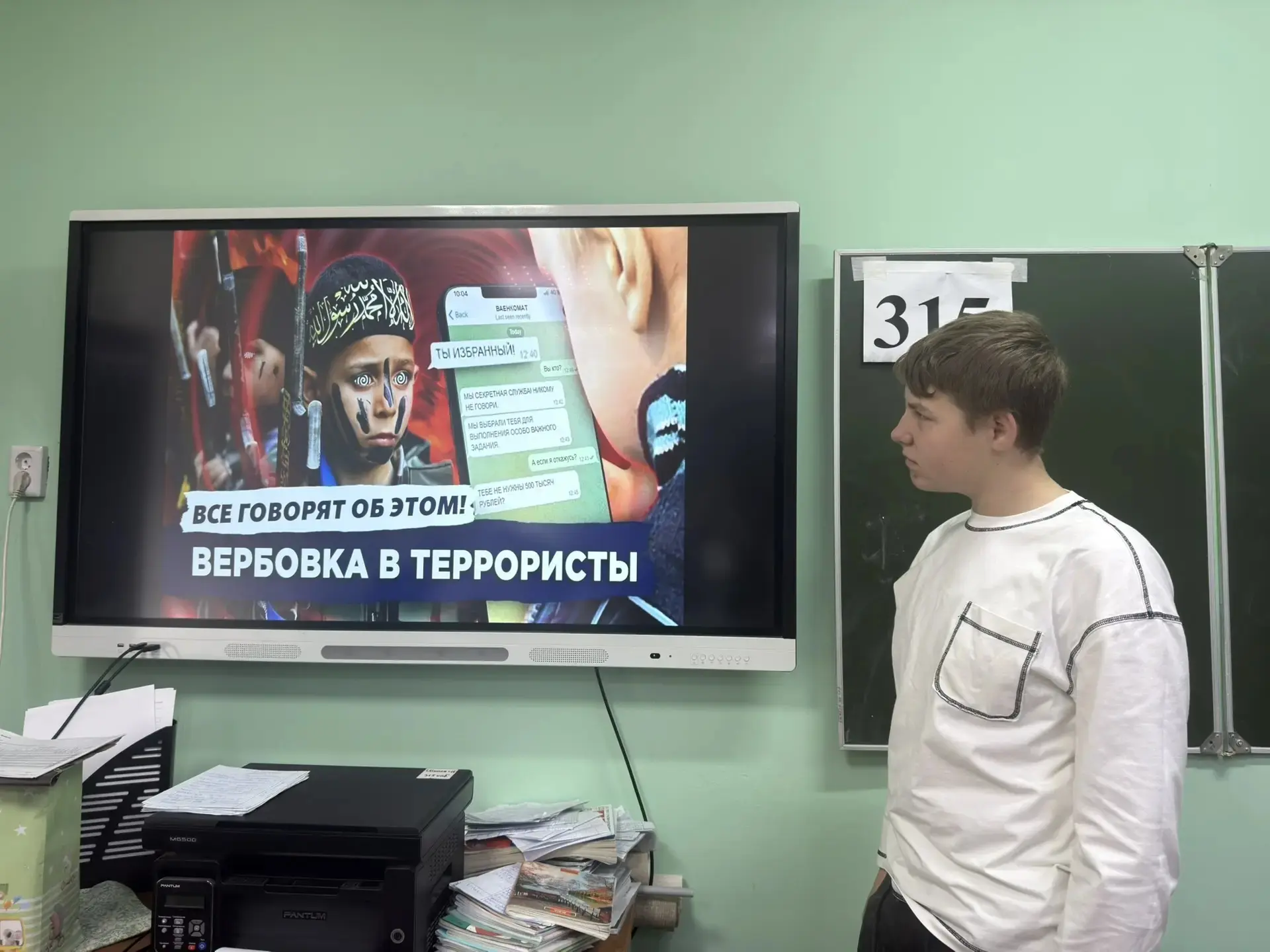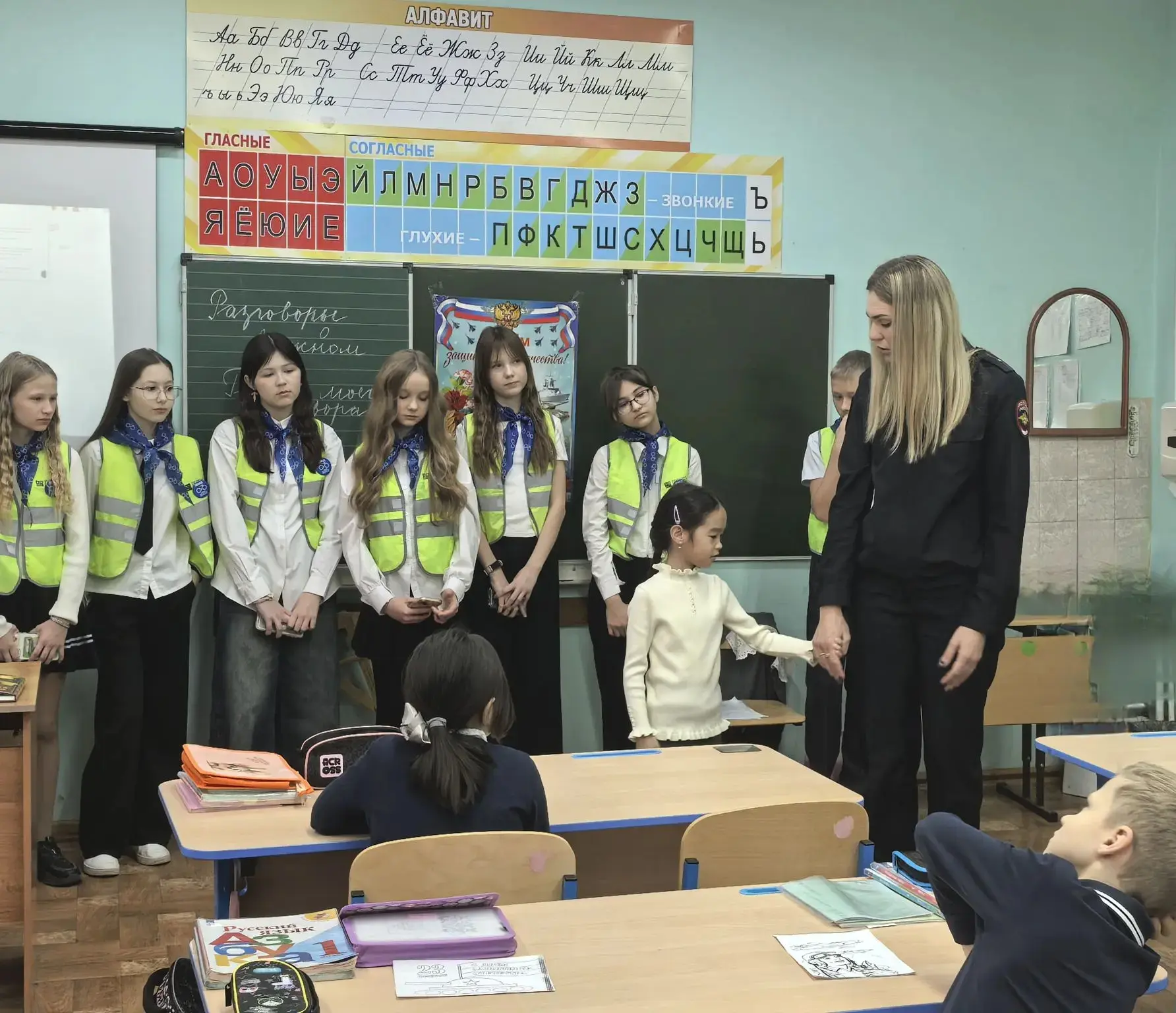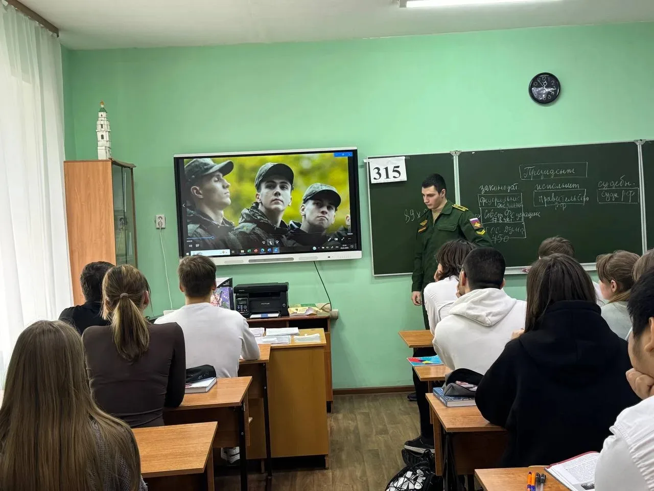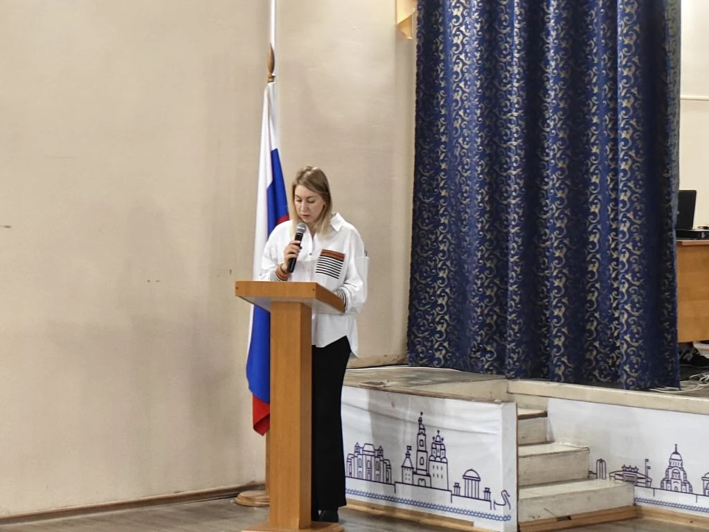 Перед учениками выступила учитель истории и обществознания Журавлёва Ирина Михайловна. Разговор шел о серьезных вещах: как работает система защиты государства, почему бдительность каждого из нас так важна и как не стать жертвой провокаций.