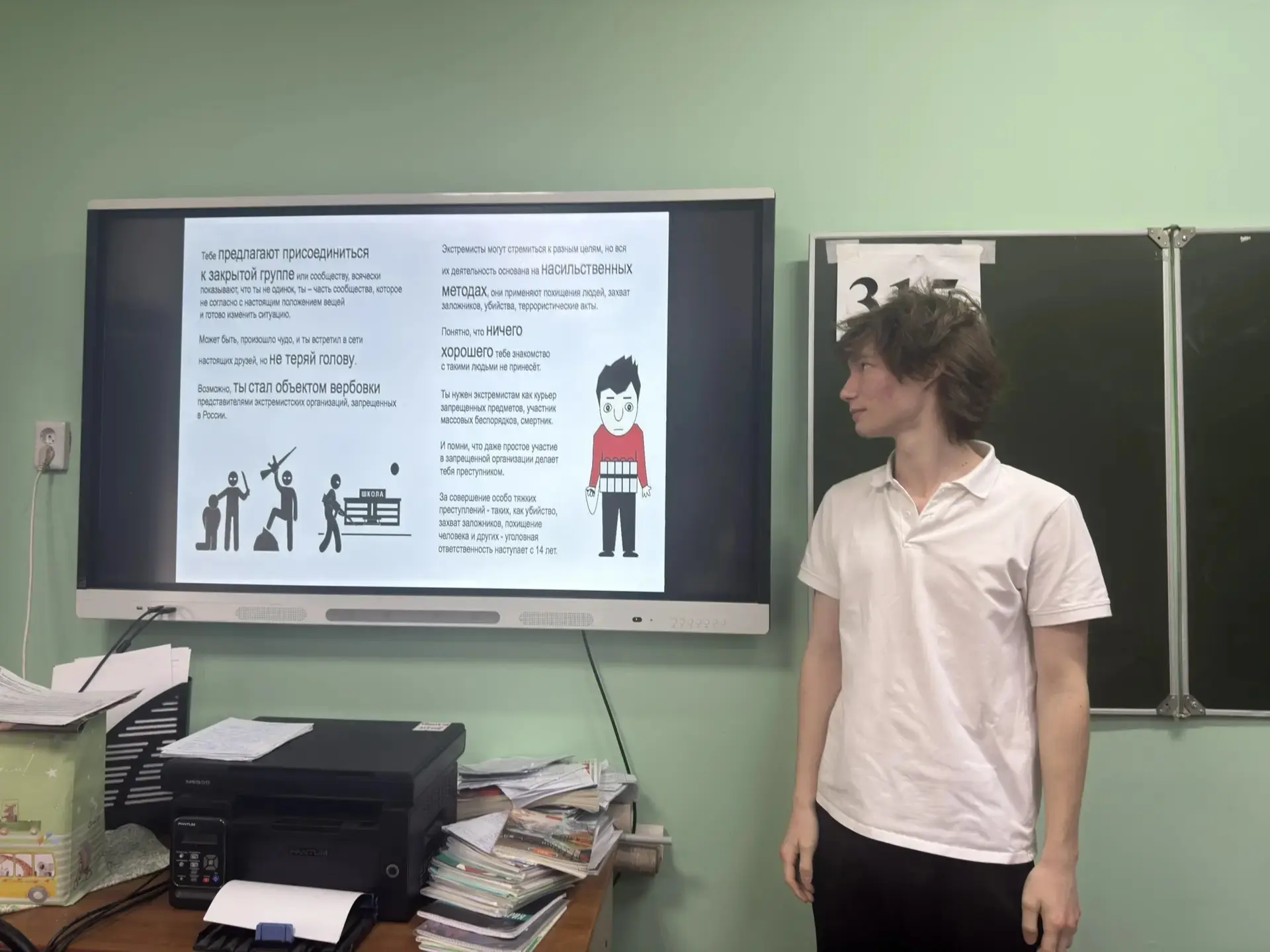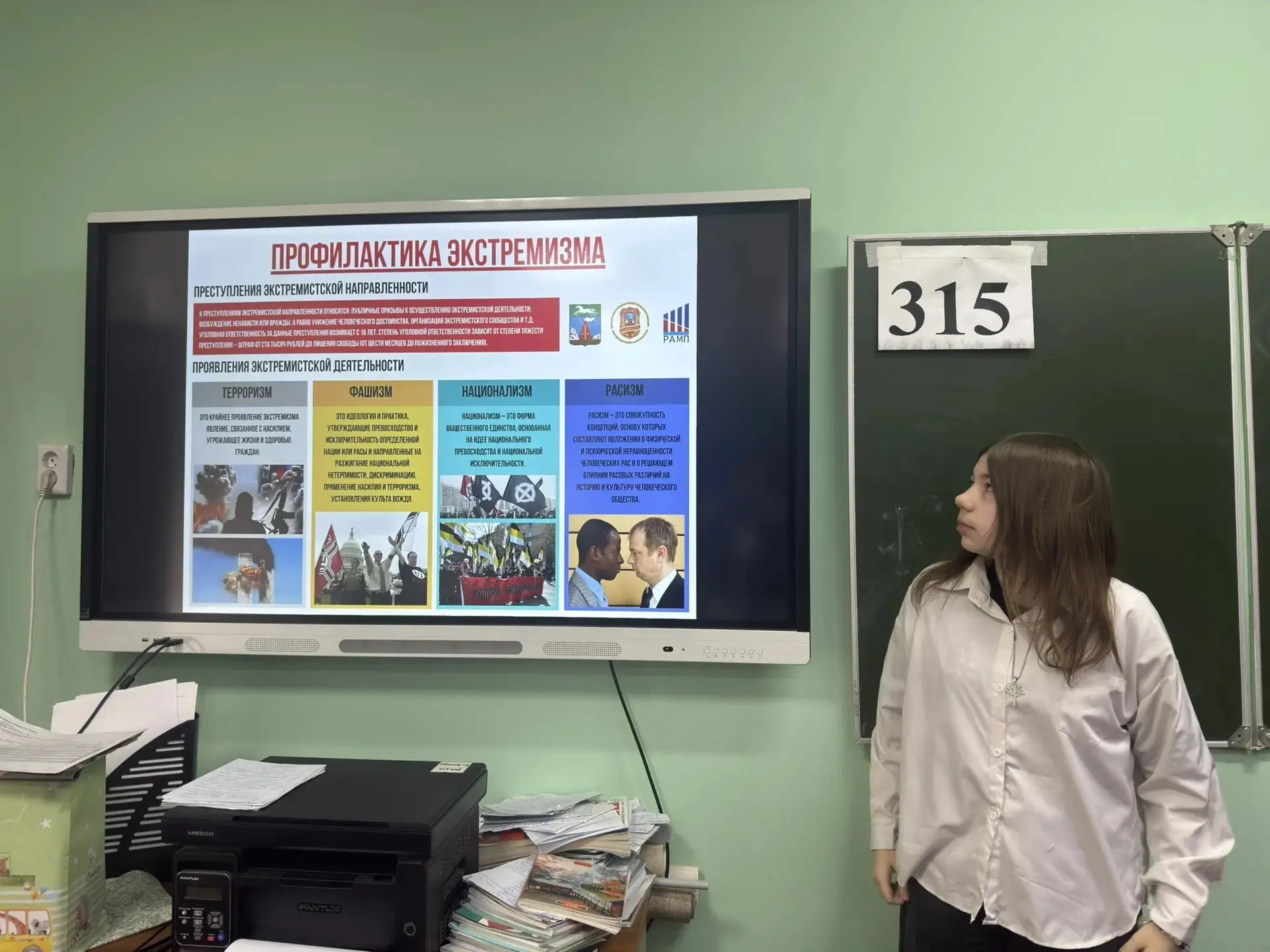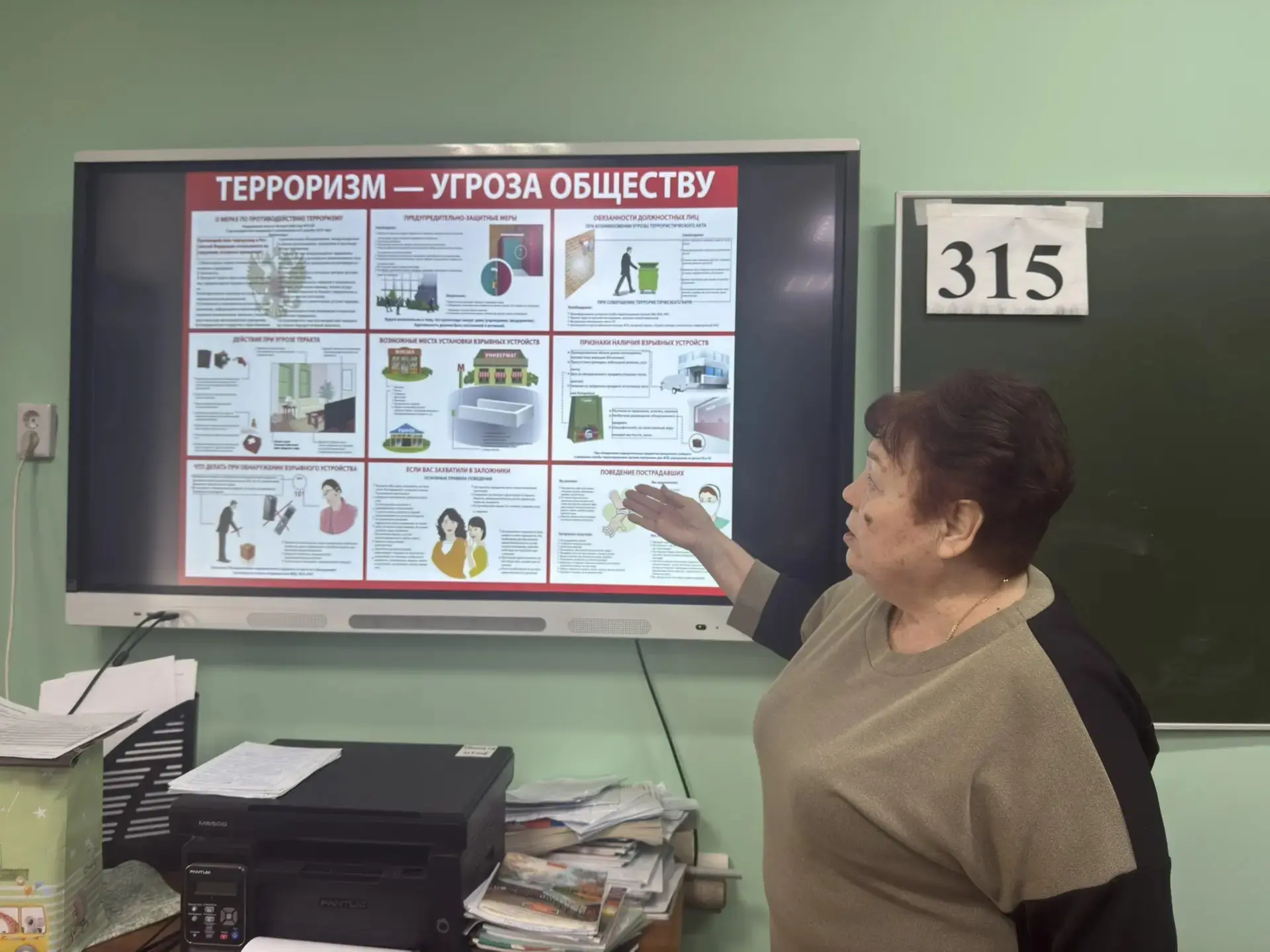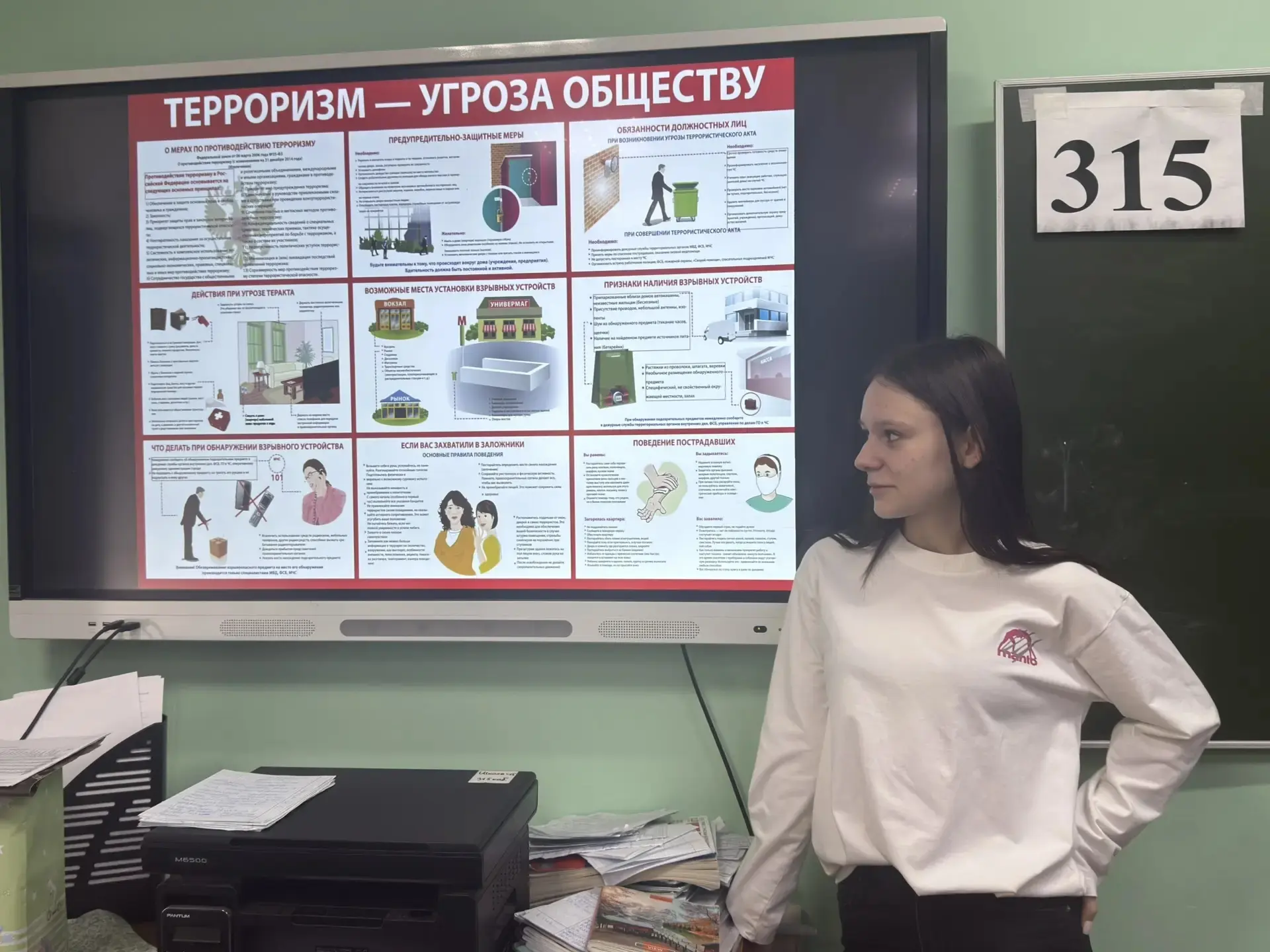 Перед учениками выступила учитель истории и обществознания Журавлёва Ирина Михайловна. Разговор шел о серьезных вещах: как работает система защиты государства, почему бдительность каждого из нас так важна и как не стать жертвой провокаций.