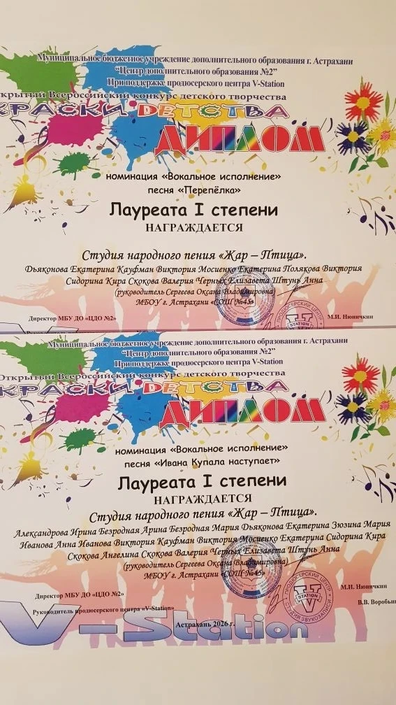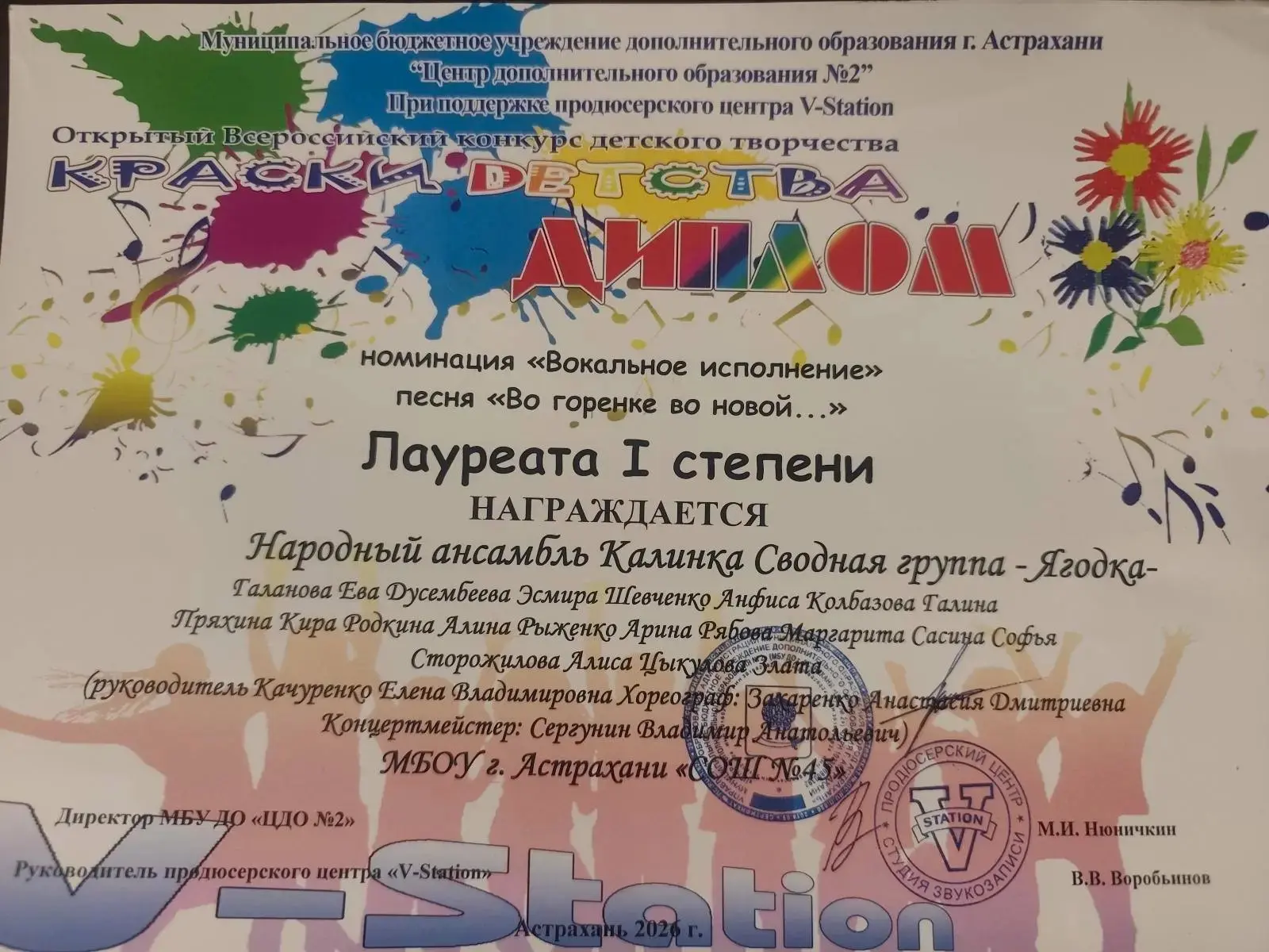 Абельдаева Василиса, Барат Варвара, Вихляева Анна, Голобородько Анастасия, Емельянова Мария, Жирнова Виктория, Козак Анна, Кустанаева Сафия, Леонова София, Литвинова Нина, Мрцхулава Давид, Пелин София, Павликова Дарина, Плотникова Маргарита, Селезнева Анастасия, Сидоренко Вероника, Сороколетова Лия, Сороколетова Мария, Яковенко Ростислав, Ярославцев Кирилл.