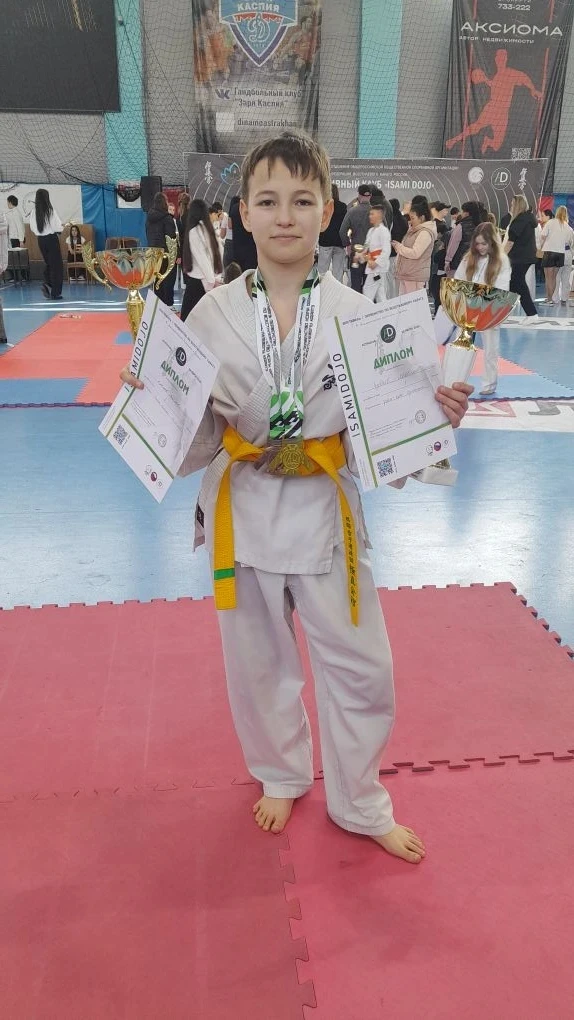 В Астрахани прошли захватывающие соревнования по каратэ, и у нас есть повод для гордости! Ученик 6А класса, Пашков Максим, достойно принял участие в двух дисциплинах: показал своё мастерство в ката (формальные упражнения) и проявил характер в кумите (поединках).