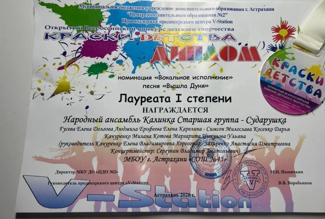Поздравляем Чарыеву Дашу, ученицу 3 «Б» класса, с блестящим успехом на Международном конкурсе-фестивале «Родной причал»! 🌟