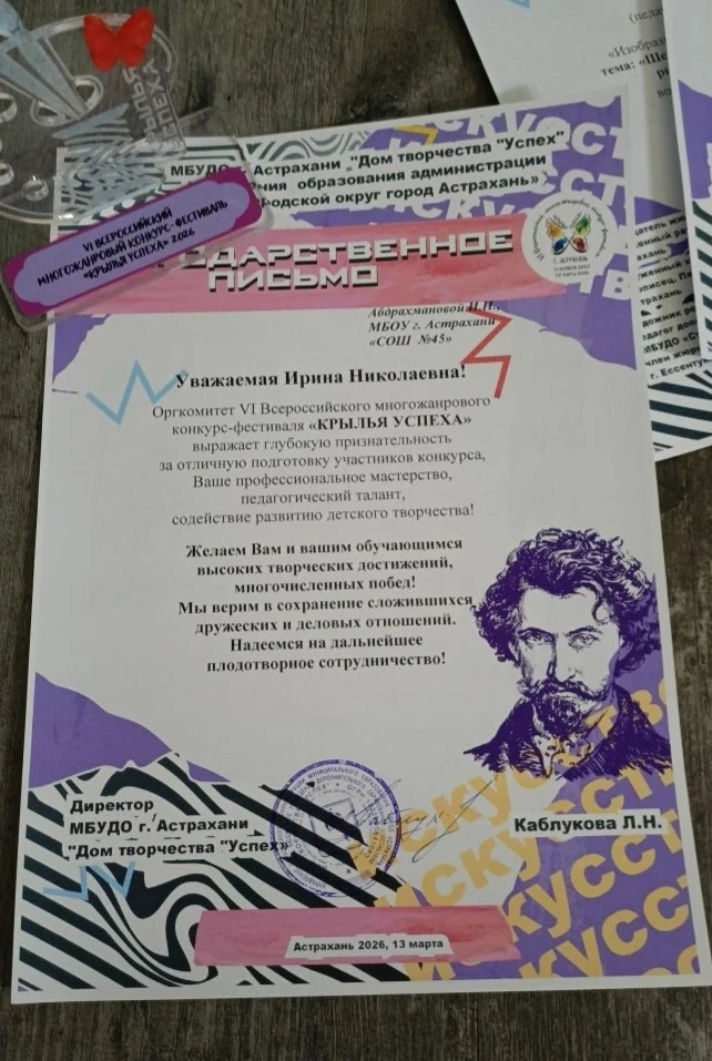 Благодарим педагога за профессионализм, а Татьяну — за трудолюбие и талант! Желаем новых творческих побед и вдохновения! 🎨