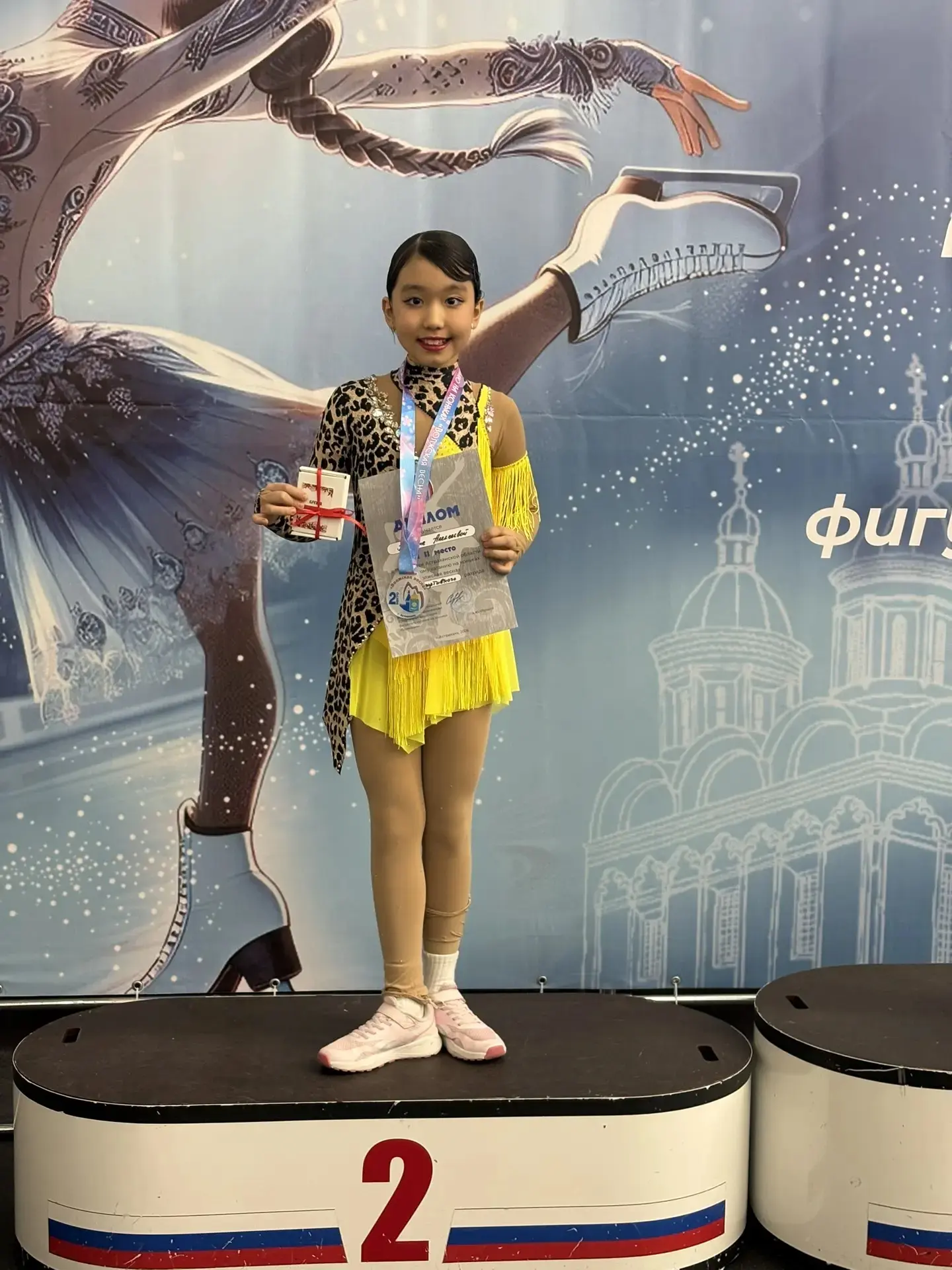 Альмина завоевала почетное 2 место, подтвердив свой высокий уровень мастерства. Эта победа — результат ежедневных тренировок, невероятного упорства и искренней любви к спорту. Её прокат запомнился зрителям своей чистотой, артистизмом и настоящей красотой движений.