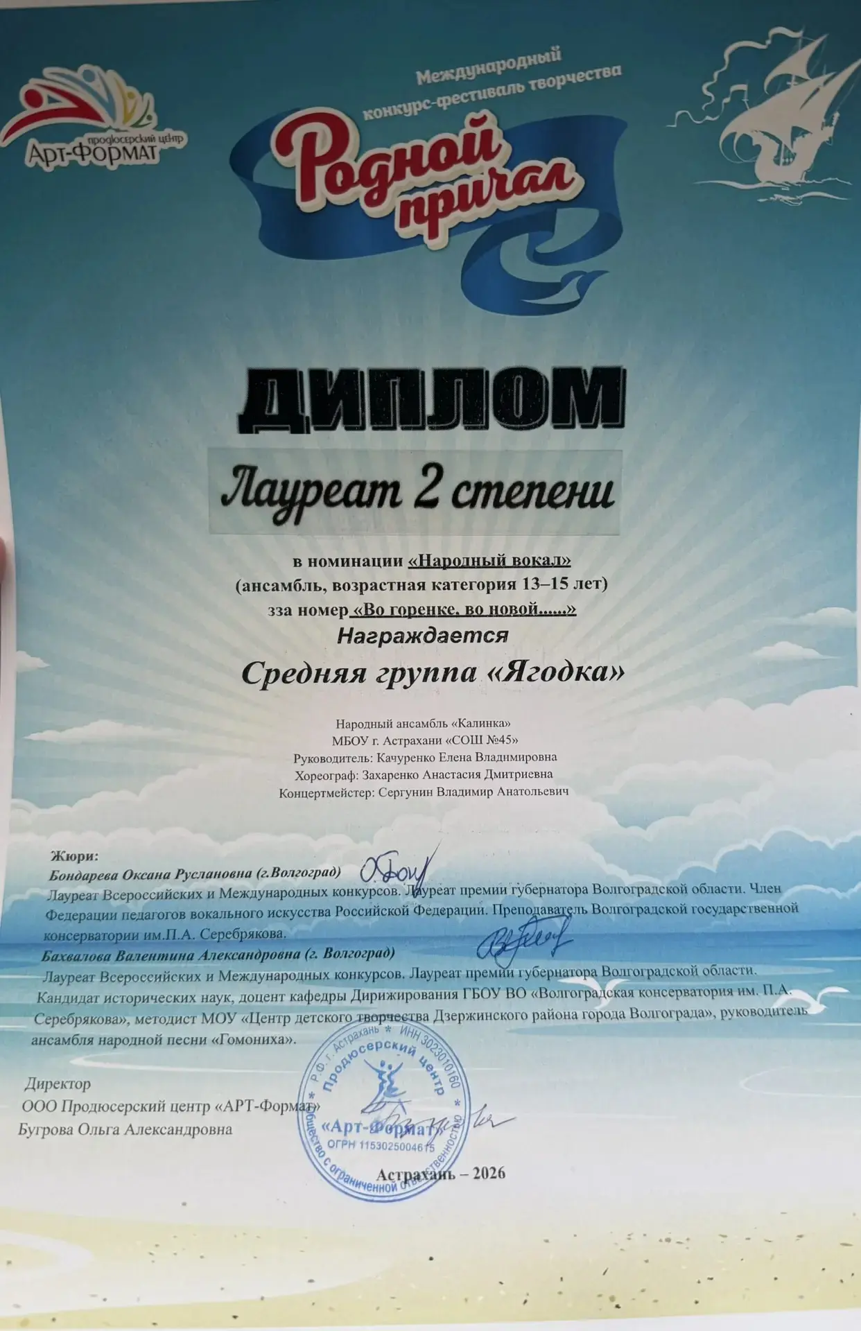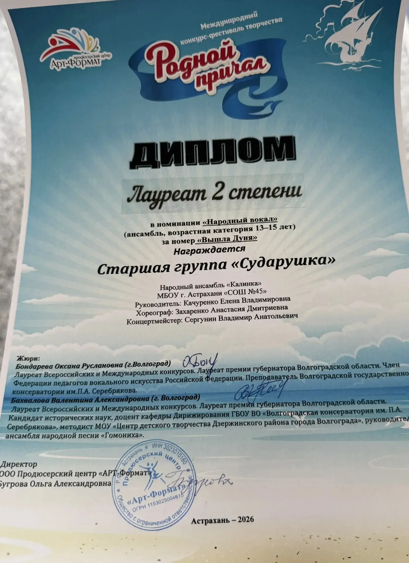 🏆 Старшая группа «Сударушка» — Лауреат II степени