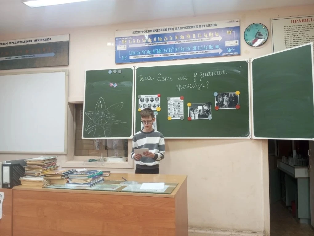 Сегодня в нашей школе прошло занятие «Разговоры о важном» на актуальную тему: «Есть ли у знания границы?». Занятие было приурочено к приближающемуся Дню российской науки (8 февраля).