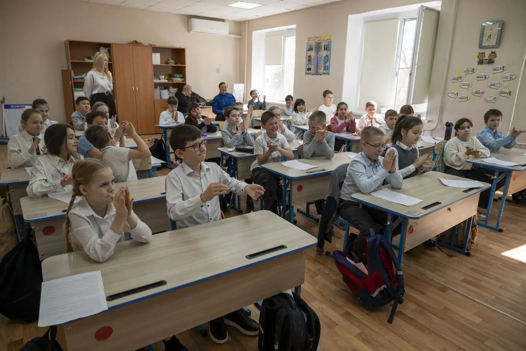 В астраханской школе №45 прошел "Киноурок" с участием ветерана СВО Ильи Лизунова. Тяжелое ранение, полученное при выполнении задач в Харьковской области и ЛНР, полностью лишило бойца зрения, но не сломило волю.