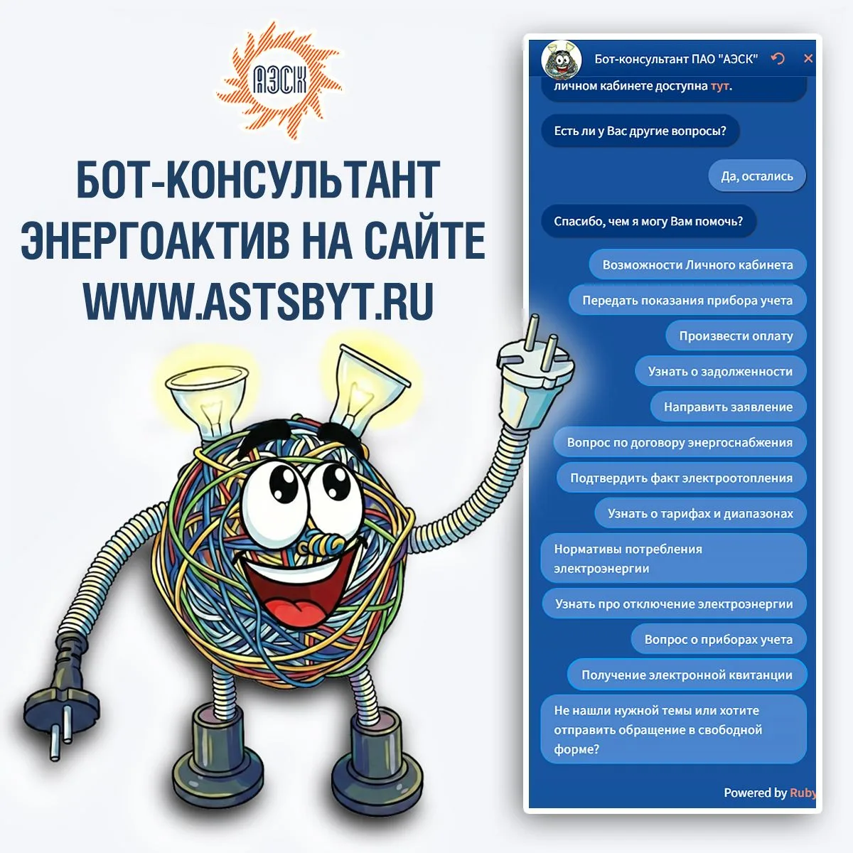 Со всеми способами оплаты вы можете ознакомиться 📎 здесь: https://www.astsbyt.ru/oplata-elektricheskoj-energii/