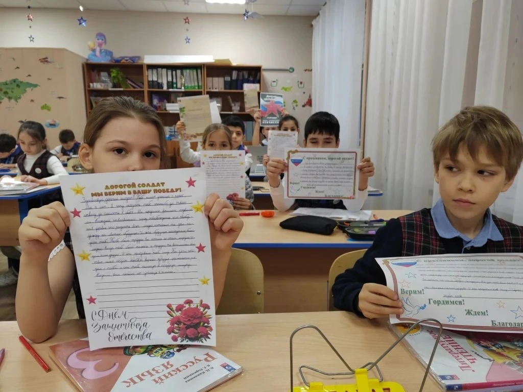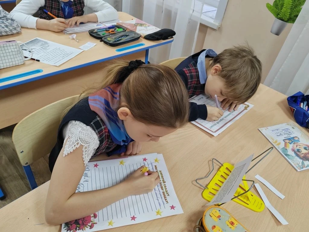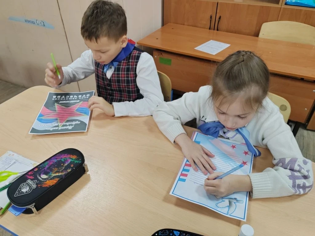 Учащимся были разданы шаблоны писем. Ребята написали теплые слова поддержки нашим защитникам. Пусть наши письма согревают сердца тех, кто служит Родине!