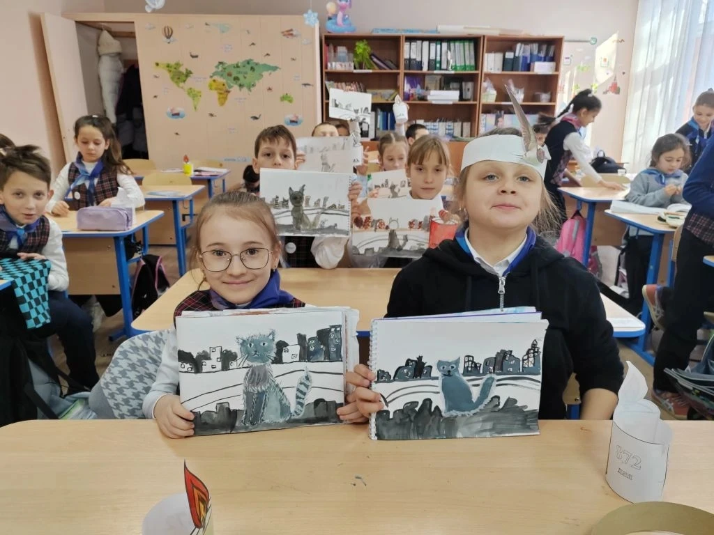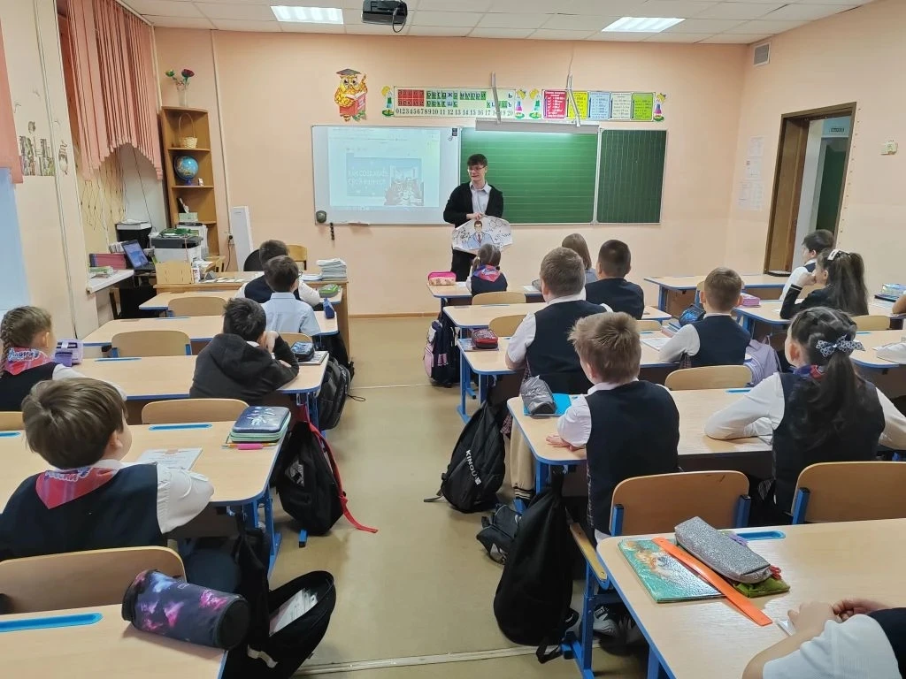 Учащиеся 3 классов разговаривали о животных, которые помогали своим хозяевам выжить в блокаду Ленинграда. С таким котом Васькой и познакомились на уроках.