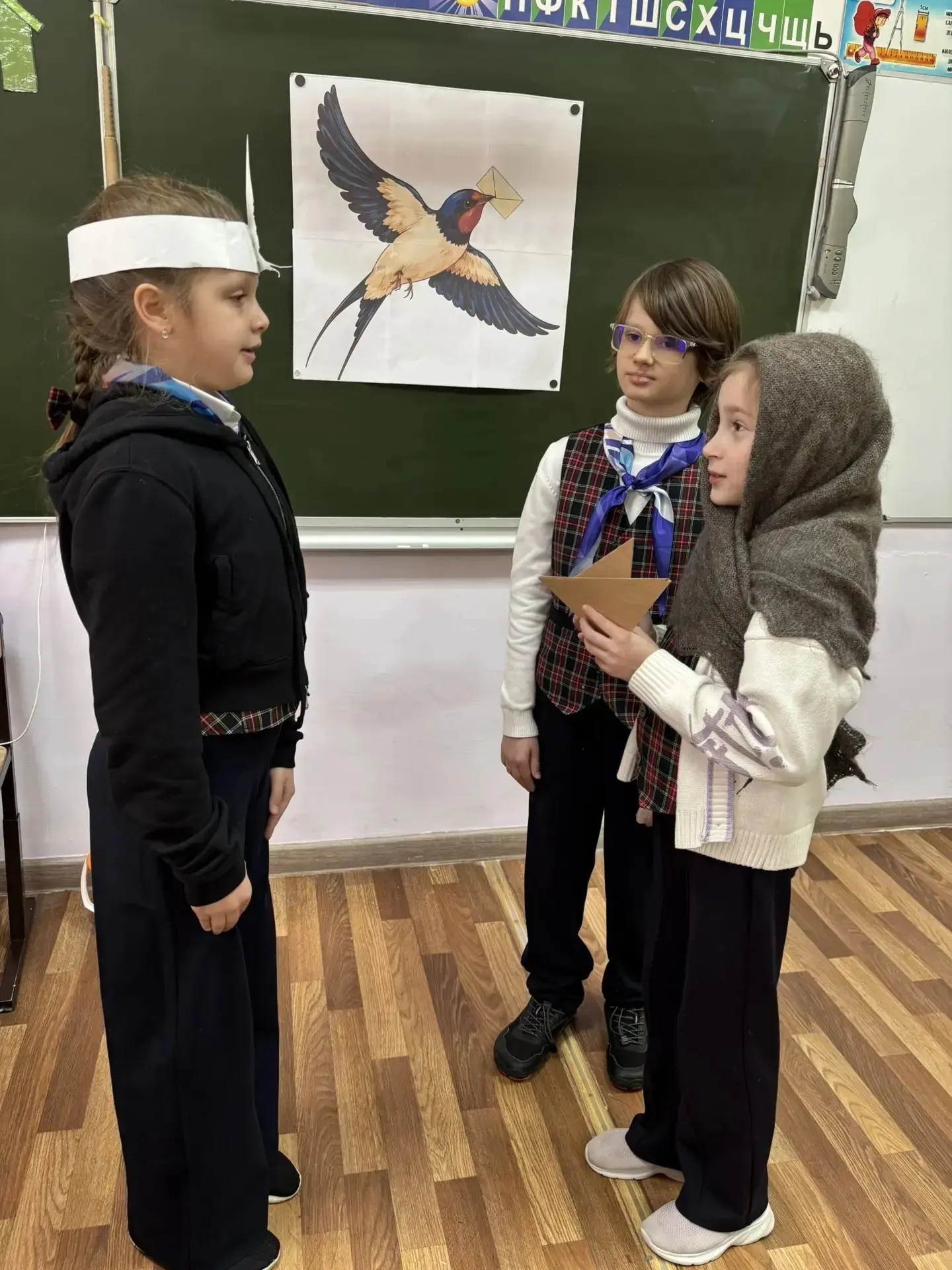 📨По окончанию сценки, каждый ученик получил значок с изображением ласточки с письмецом.
