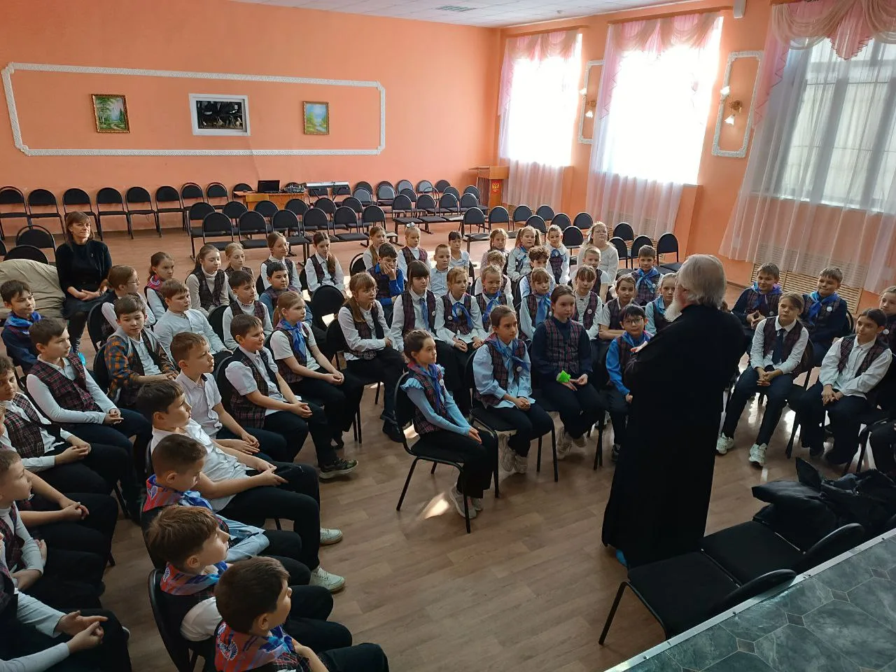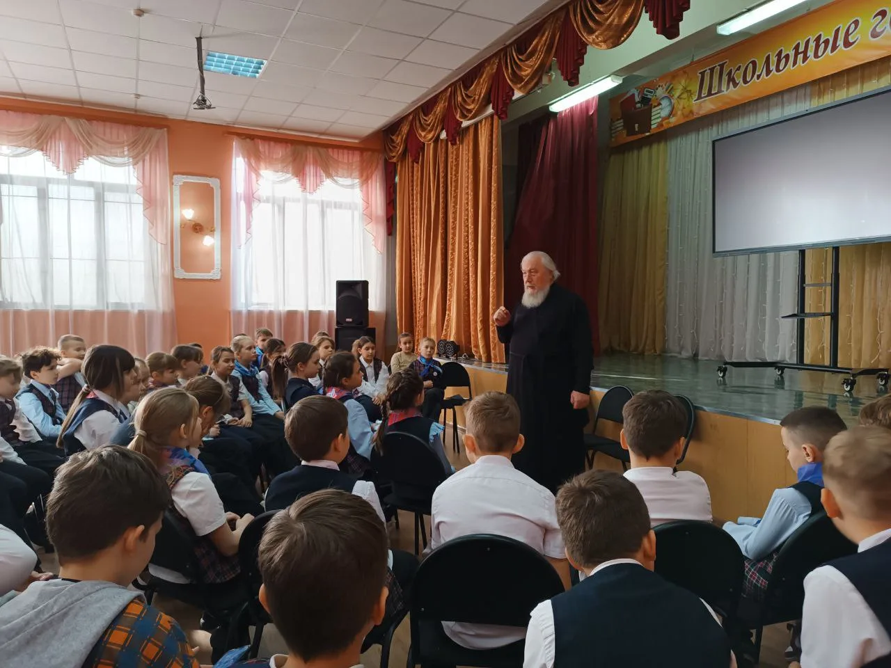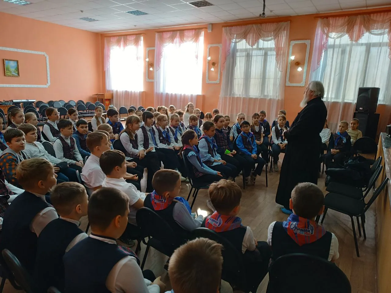 ✨В рамках изучения предмета ОРКСЭ, по модулю ПРАВОСЛАВНАЯ КУЛЬТУРА с учениками четвёртых классов в школе была организована встреча с отцом Николаем, служителем храма Преображения Господня.