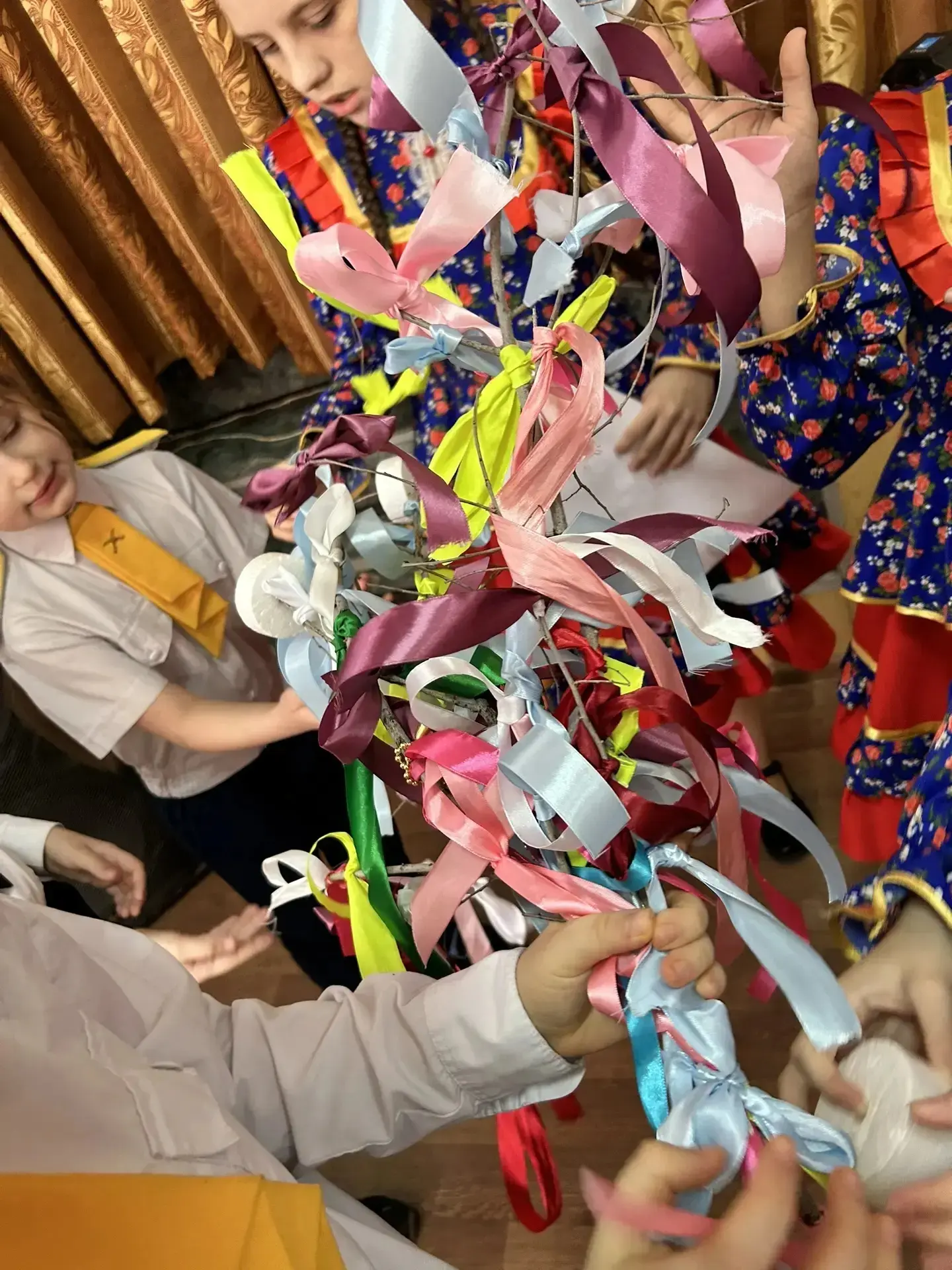 🥞Дети играли, провожая зиму и встречая весну, наряжали ветки ленточками и колокольчиками, где каждый смог проявить творчество, соревновались, водили хоровод.